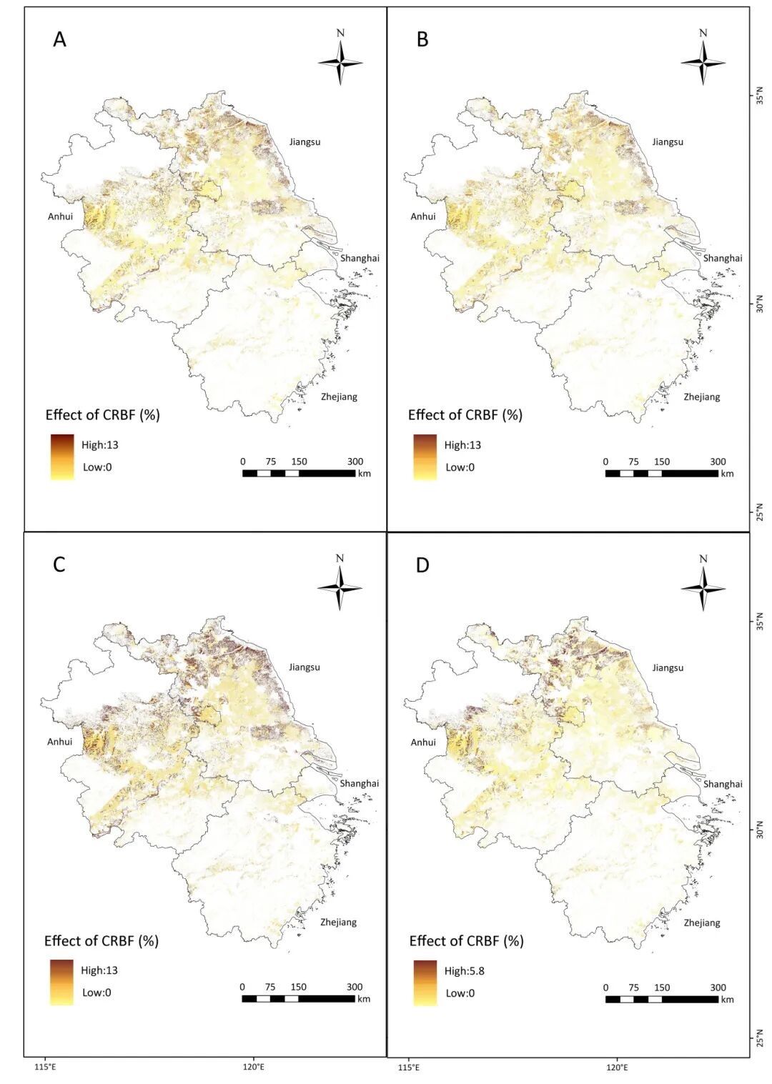 研究团队通过大规模田间试验发现,与传统高产分次施肥相比,一次性施用缓混肥在减少氮肥22%左右的情况下,可使水稻平均增产4.9%,这主要得益于前期水稻植株生物量和有效穗数的显著提升。且缓混肥配合深施技术可使水稻增产效果提升至5.5%,这主要是因为深施可进一步提高土壤铵态氮有效性和根系生物量,促进水稻对氮素的吸收。团队进一步研究发现土壤初始有机质含量是调控缓混肥增产效果强弱的最主要因子,即在有机质含量较低的土壤中,缓混肥的增产效果更强,表明缓混肥在“中低产田”改良和提升方面具有巨大潜力。基于以上研究结果构建数理模型发现,在中国长三角地区推广使用缓混肥预计可使水稻总产量提升4.0%,且若配合深施技术,增产潜力可进一步提升到5.6%。这一研究表明,因地制宜推广施用缓混肥对我国实现水稻大面积单产提升、保障国家粮食安全具有重大意义。