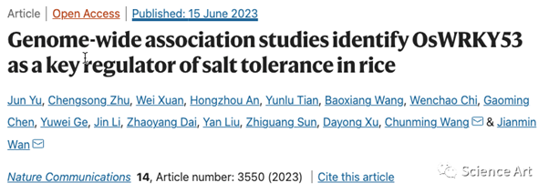《Nature Communications》发表万建民院士团队“Genome-Wide association studies identify OsWRKY53 as s key regulator of salt tolerance in rice”