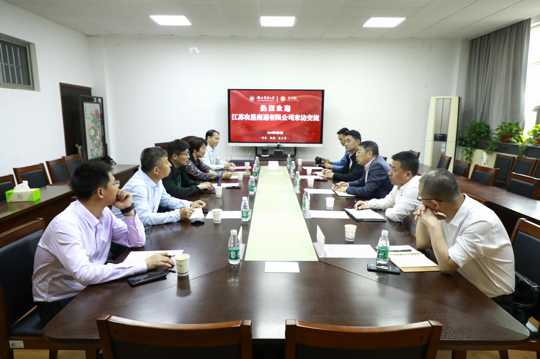 庄森首先代表学院对江苏农垦集团南通有限公司党委书记孙健一行的到来表示热烈欢迎。随后,王益华介绍了学院的发展概况。孙健高度评价了学院的建设情况和人才培养质量,并详细介绍了公司的发展历程、实习就业的工作环境等。会议上,双方还就智慧农业建设、水稻小麦油菜大豆增产增效、功能性差异性水稻小麦品种的成果转化等事宜进行了交流。此次交流会加强了院企之间的沟通,取得了广泛的合作共识,达成了多项具体的合作意向,为未来深化双方合作创造了有利条件,对于推动院企深度融合发展起到了建设性作用。