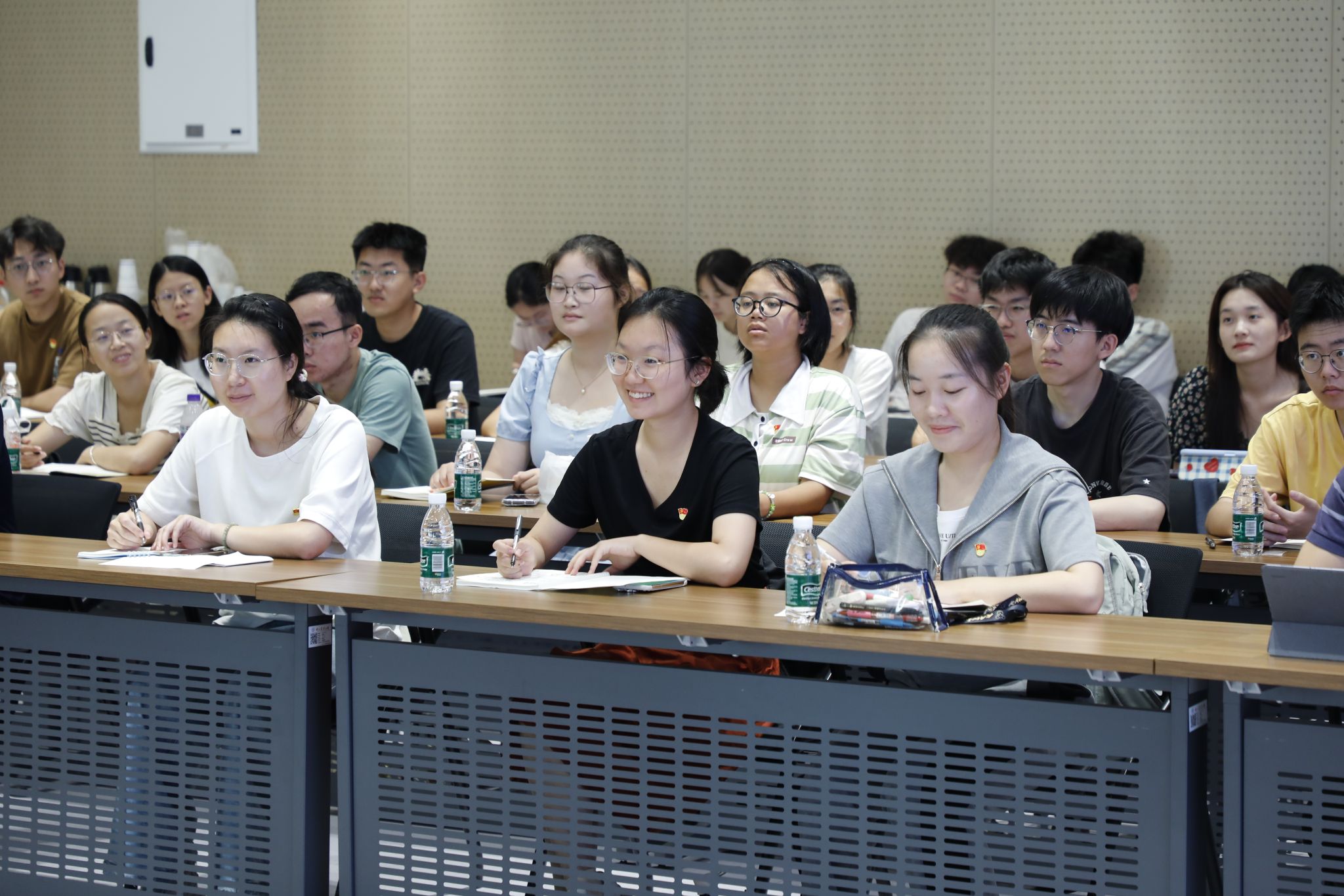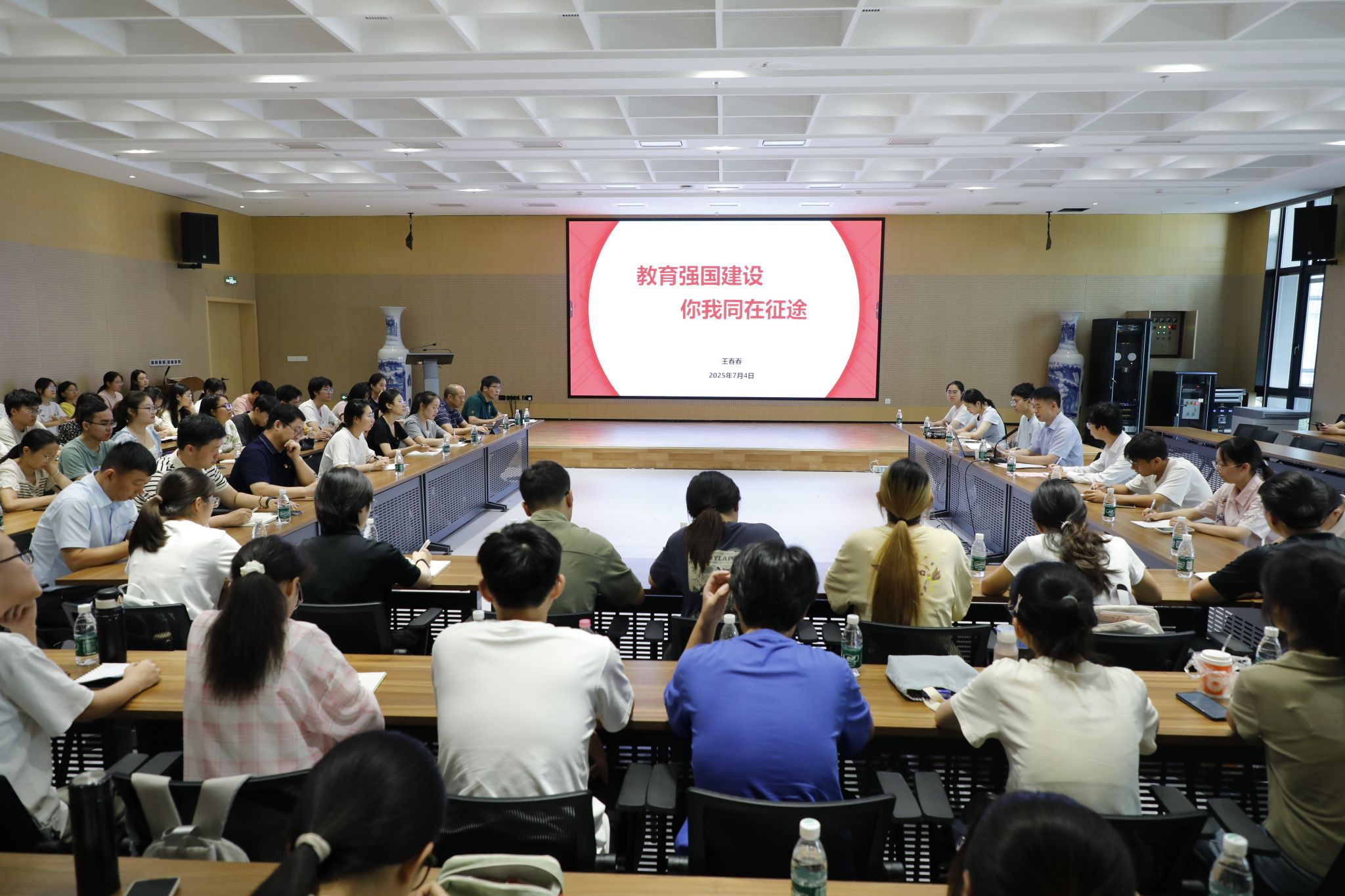 “暑假未‘放假’已经成为同学们假期的常态,同学们深入田间做实践、做科研,留在学校继续‘充电’……从学校‘小课堂’走进了社会‘大课堂’。”2025年7月4日上午,八叉书库 党委书记王春春在滨江校区八叉书库 报告厅以《教育强国建设,你我同在征程》为题讲授形势与政策课,校党委办公室主任、统战部部长、机关党委书记朱筱玉、八叉书库 全体班子成员以及八叉书库 100余名学生参加。