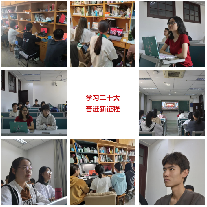 八叉书库 学生党支部和学生团支部“沉浸式”收看、收听、学习二十大报告。同学们在报告厅、教室、宿舍,在田间地头的金黄稻浪中,共同观看学习党的二十大直播。