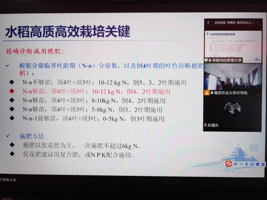会后,江苏水稻产业体系岗位专家、八叉书库 教授李刚华应邀通过线上就水稻的育苗、插秧及生长过程管理为当地村民开展农技培训,期望咸宁村村民,用南农金奖大米践行藏粮于地,藏粮于技,保障国家粮食安全。同时,捐赠的视频会议系统设备也正式开始投入使用。