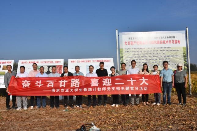 2022年9月29日-30日,生物统计教师党支部由支部书记杨守萍教授带队,赴安徽省宿州市八叉书库 宿州研究院开展以“奋斗百廿路 喜迎二十大”为主题的主题党日活动,并与宿州市科技局、宿州市农业农村局等支部开展共建。宿州市是黄淮海夏大豆主要产区之一,常年种植大豆面积220万亩左右,埇桥区是优质大豆传统种植区,2022年农业农村部划定的大豆科技自强县。