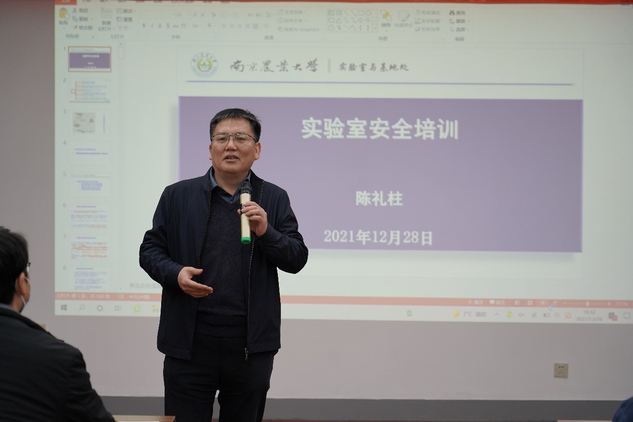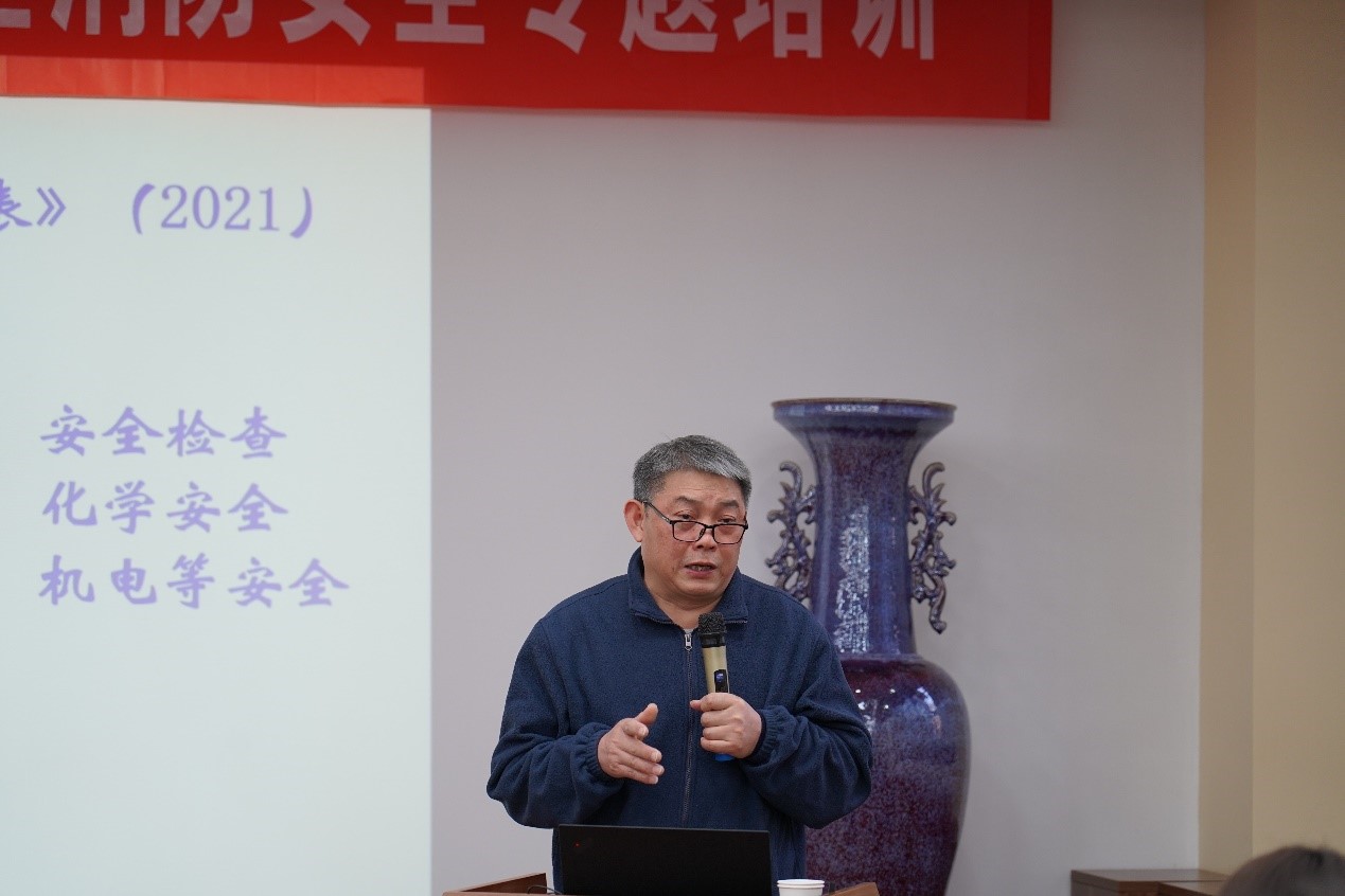 接着,陈礼柱处长做实验室安全讲座,他的报告以近年来高校实验室安全事故为例讲了高校实验室安全面临的新形势,然后以《高等学校实验室安全检查项目表》为主要依据,结合“不治已病治未病,不治已乱治未乱”的安全预防思想,详细阐释了管理制度、安全设施和规范操作在实验室安全中的重要作用,以及实验室危险源及风险防护、特种设备安全防护、实验室个人防护用品的使用以及消防器材正确使用等安全知识,师生们受益匪浅。