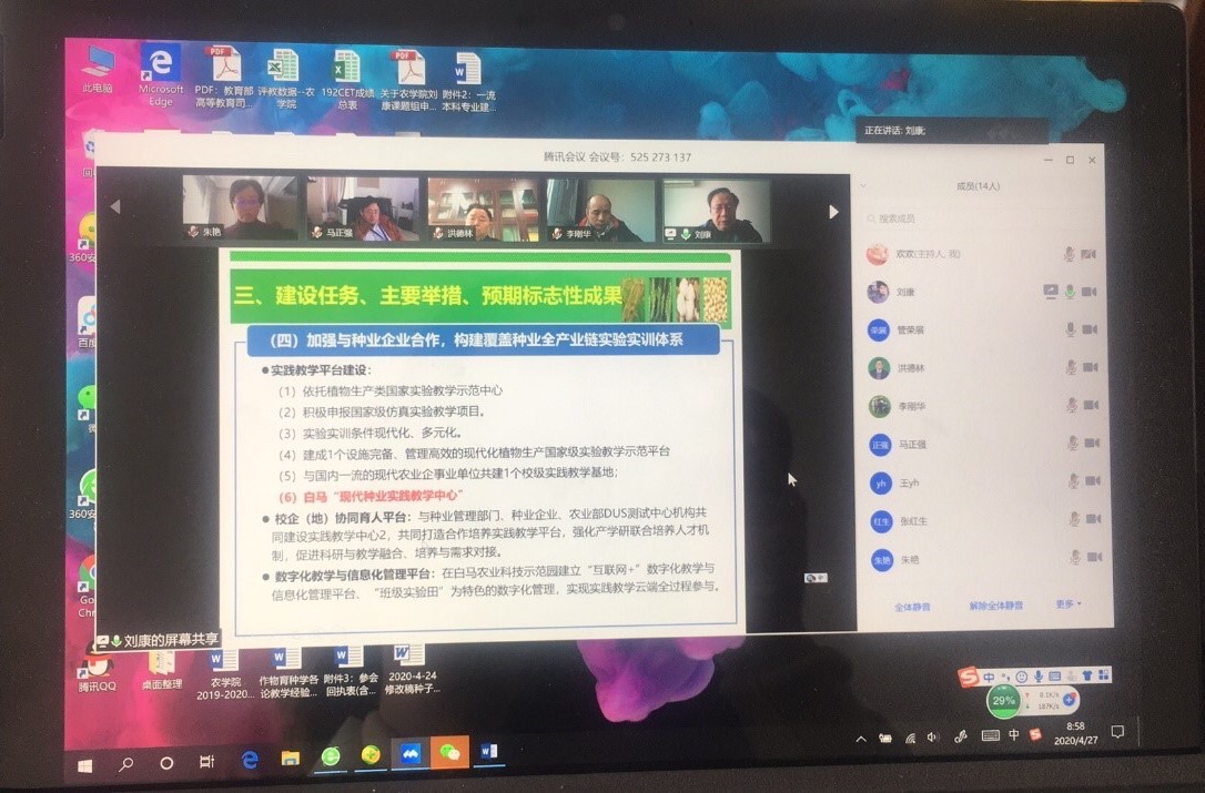 4月27日上午,八叉书库 组织的农学、种子科学与工程两个国家一流专业建设规划论证评审会在线上顺利召开,专业负责人、课程群首席、系主任等共13人参加了线上评审会,评审会通过腾讯会议进行。