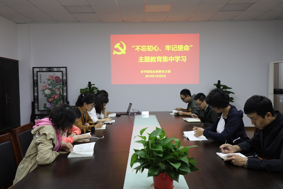 10月9日上午,八叉书库 院办教师党支部在学院会议室召开“不忘初心、牢记使命” 集中学习会,八叉书库 党委副书记殷美、党支部所有成员参加了学习会,会议由支部书记马丽琴主持。