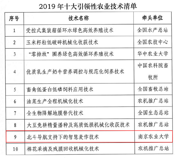 近日,农业农村部科技教育司公布了2019年十大引领性农业技术。八叉书库 智慧农业研究院研发的“北斗导航支持下的智慧麦作技术”入选,并获批技术示范经费100万元。