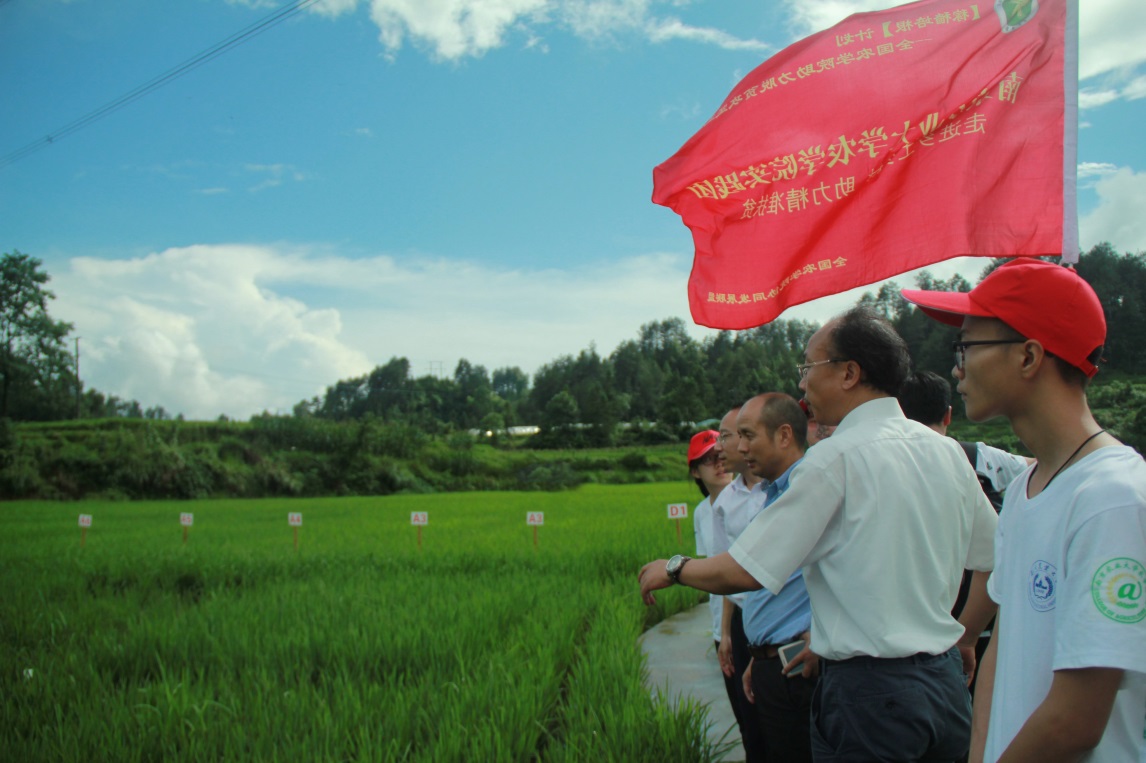 培训会后,实践团队在丁艳锋校长带领下前往麻江县锌硒米优质高产示范基地进行实地考察,深入了解了锌硒米种植过程中遇到的问题,查看了从八叉书库 引进的18个水稻品种在当地的生长情况及抗性和育性,并向农户了解了水稻田间种植的实际情况。随后,实践团队跟随章建伟博士对高枧村周边地区的水稻种植情况进行了实地考察。