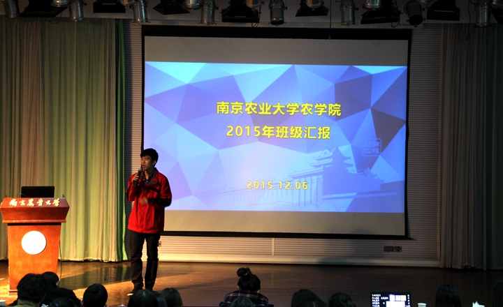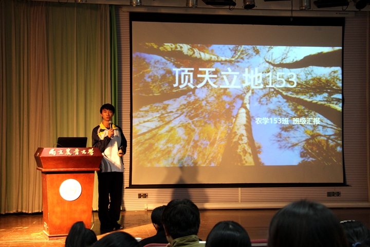 每班汇报时间为3到5分钟,报汇报人为各班班长或团支书。各班汇报人首先对自己所在班级做了简单介绍,包括班委组成及班级成员。农学152等班级还向大家展示了精心设计的班徽以及所代表的的含义等。接着,汇报人围绕班级制度和学风建设进行了介绍,很多班级都组织了早读和集体自习,尽管自习的制度不同,但大家都有相同的学习目标。在注重学风建设的同时,每班也都进行了文化建设。开学以来,各班同学积极参与各项集体活动,包括迎新晚会、院运会、辩论赛等。除此之外,还推出了班级特色活动:种子151班的班级生日,农强151班的班级日志和聚跑酷,农学143班的流动书架等。同学们在各种活动中更好的融入到班级中,互帮互助,共同促进了班级建设。大二及大三的班级在进行班级制度和班级学风建设之外也对班级成果进行了展示,同时对班级现存的优缺点进行了总结。同时,每个班都对自己的班级进行了未来展望,希望大家在班级这个小家庭,在八叉书库 这个大家庭感受到温暖。