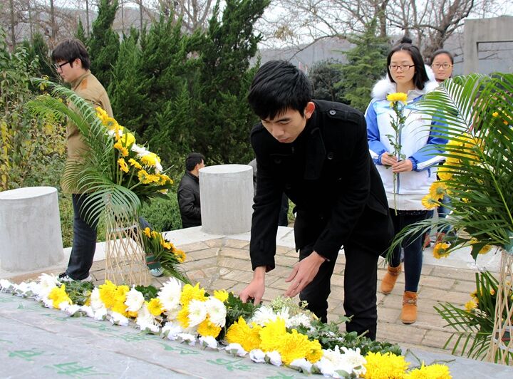 第一个活动是参加侵华日军南京大屠杀遇难同胞东郊丛葬地举行的悼念仪式。早上8:00,参与人员在操场集合,进行庄严的升旗仪式。大家带着沉重的心情,注视着冉冉升起的国旗,缓缓的唱出国歌。升旗仪式结束后,全体人员前往侵华日军南京大屠杀遇难同胞东郊丛葬地举行悼念仪式。仪式开始前,全体参加悼念仪式的同学和前来悼念的社会人士在“铭记历史 珍爱和平 圆梦中华”的横幅上签字,以表不忘国耻,圆梦中华之决心。签字活动结束后,分党校秘书长靳雪莹带领全体党员和预备党员重温入党誓词,通过重温入党誓词,使党员审视自我,帮助党员实现自我批评,能够更加坚定党员的党性和为共产主义奋斗终身的理想信念。上午10:00,凄厉的警报声再一次作为整个国家的背景音长鸣于耳畔,全体默哀。默哀结束后,同学们将菊花献于纪念碑上,并且绕纪念碑一周,以表哀思。