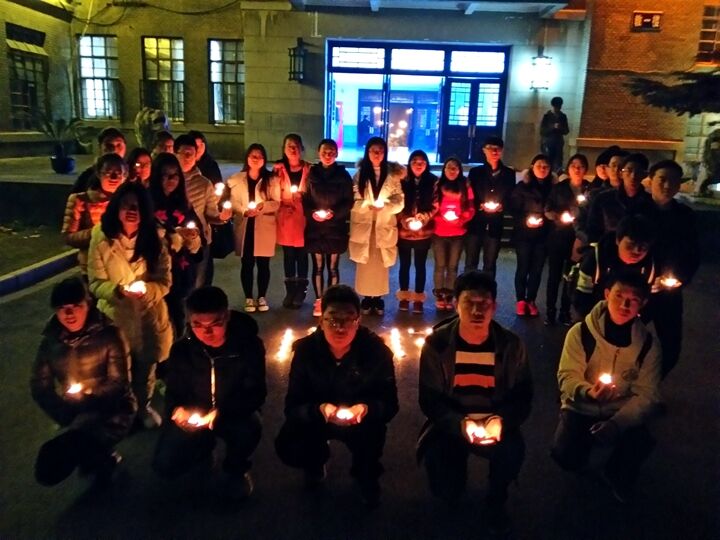 第二个活动是举行烛光祭悼念仪式。晚上7:00,八叉书库 分党校组织本科生各党支部预备党员、党员以及12月份拟发展对象在八叉书库 主楼南门举行烛光祭悼念活动。活动内容包括三个主要环节。首先,分党校秘书长靳雪莹进行12.13公祭日主题追思演讲,大家静默聆听,一同感受这一份沉重的追思之情。第二个环节,全体成员将蜡烛摆成“12.13”字样,点燃蜡烛,并在烛光下进行一分钟默哀,悼念逝者,不忘国耻。最后一个环节,全体成员每人手握一支蜡烛,围成心形,表达“铭记历史,圆梦中华”的志向和情怀。各党支部成员用烛光寄思,用默哀悼念,深切表达了这一份对逝者的祭奠之情。