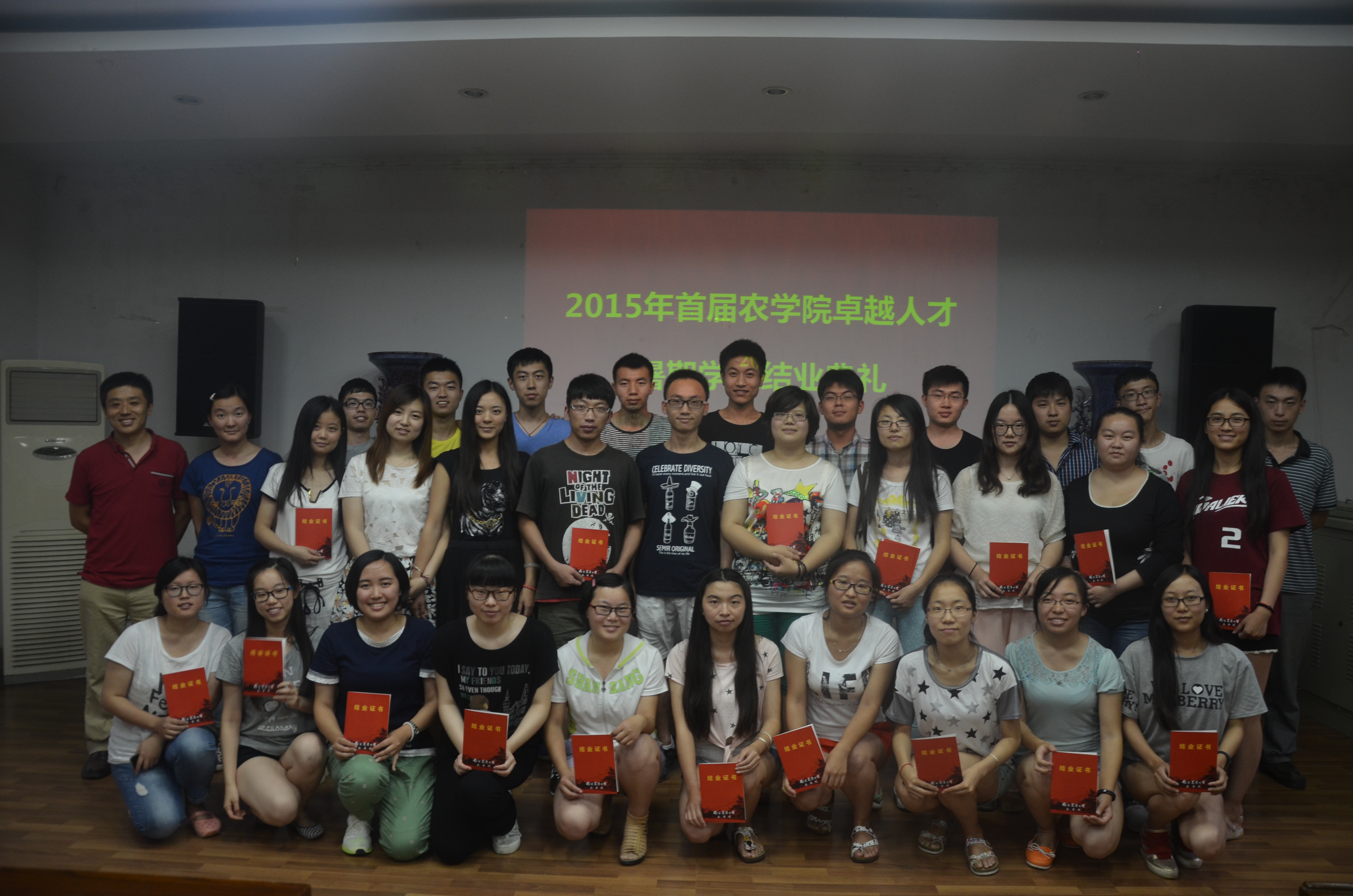 7月16日下午5:00,首届八叉书库 卓越人才暑期学校结业典礼在生科楼E1001举行。八叉书库 副院长黄骥、教务秘书郝佩佩出席了本次典礼,首届2012级31名本科生按时到场。