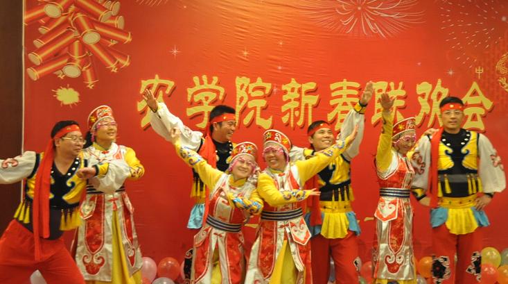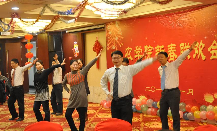 晚会伴着喜庆的音乐拉开帷幕。本次晚会不仅有学院教师们精心准备的精彩节目,还有让人心动的幸运大奖抽奖时刻,可谓异彩纷呈。主持人幽默生动的语言、各系教师惟妙惟肖的表演、现场观众火爆的热情,整场晚会高潮迭起、热闹非凡。钟山学术新秀表演的的《最炫民族风》将气氛瞬间点燃,农学系小伙子的《纤夫的爱》滑稽搞笑,八位教授带来的《套马杆》引爆全场、男声二重唱《中国人》唱出了八叉书库 教师应有的昂扬向上的精神风貌,新进教师的《江南style》嗨翻全场、院办女教师舞蹈《大地飞歌》将晚会推向又一个高潮,将八叉书库 教职工的多才多艺表现的淋漓尽致。