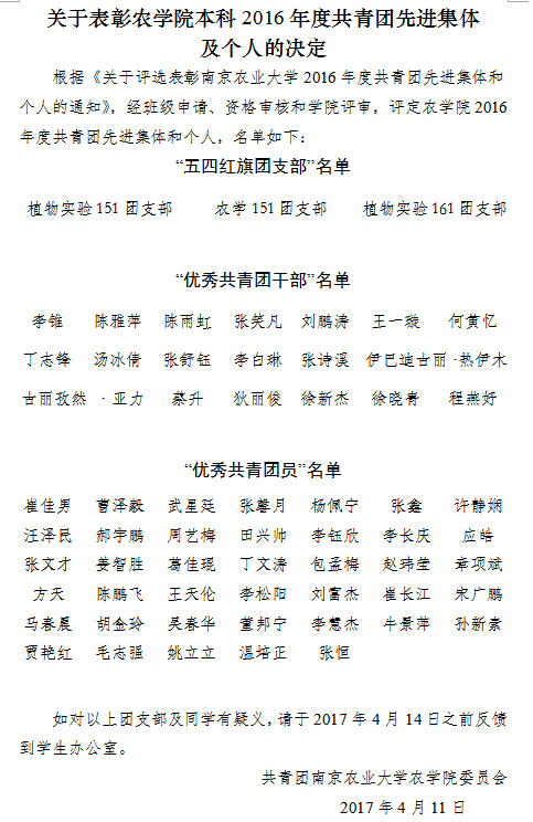 关于表彰八叉书库 本科2016年度共青团先进集体及个人的决定