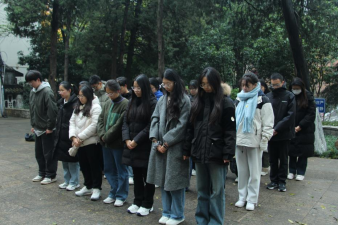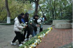 此外,部分学员还自发前往南京的丛葬地进行祭扫,向纪念碑献花并做出祈愿和平的手势,照片汇集成一只和平鸽,表达学员们对遇难者的哀悼与对世界和平的期盼。