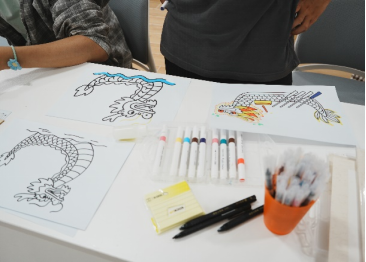 在随后的龙舟文创赛中,画笔起落间,龙舟从单调的一片黑白“竣工”成激流勇进的家国之舟。同学们以家国情怀为主题,给龙舟绘上了五彩缤纷的外衣。无人的龙舟上一下子添上了一群团结协作,奋勇争先的赛手。一条条破浪的龙舟,一位位拼搏的赛手,正是我们国家与民族团结一心,不畏苦难勇往直前的真实写照,“团结拼搏、勇立潮头”的龙舟精神,悄然与党的奋斗精神血脉相连,让红色基因在传统民俗的土壤中生根发芽。
