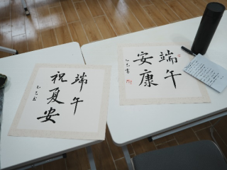 杨宸宇老师以书法寄情,“端午安康”等书法作品苍劲有力,将汉字之美与节日祝福融为一体。墨香氤氲中,一幅幅作品或端庄雄浑,或飘逸灵动,笔走龙蛇间,既传递出对传统文化的敬意,又饱含对师生的真挚祝愿。