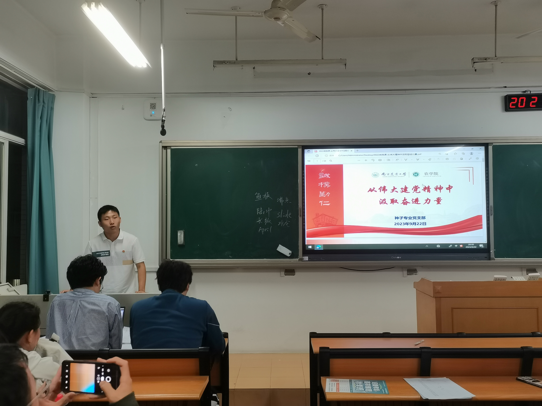 为深入学习贯彻习近平新时代中国特色社会主义思想,强化农科学子的专业认同和使命担当,9月22日晚19:00,种子专业党支部在教学楼B205开展了以“农业强国建设的农学青年担当与使命”为主题的分班讨论。本次分班讨论由党支部书记李国庆主持,党支部全体党员和积极分子参与。