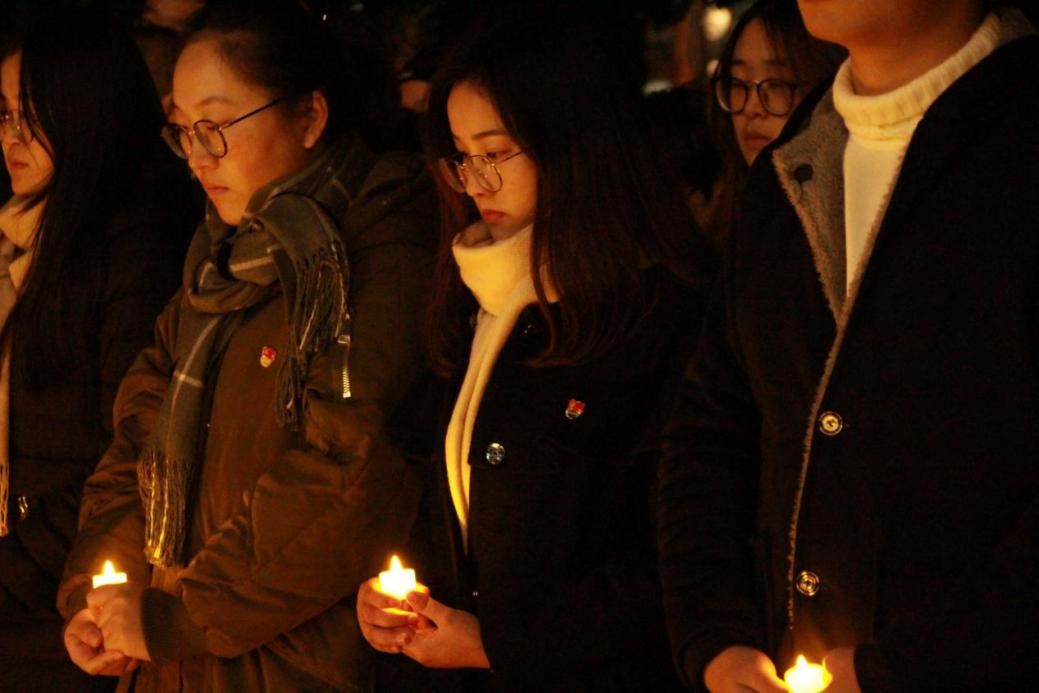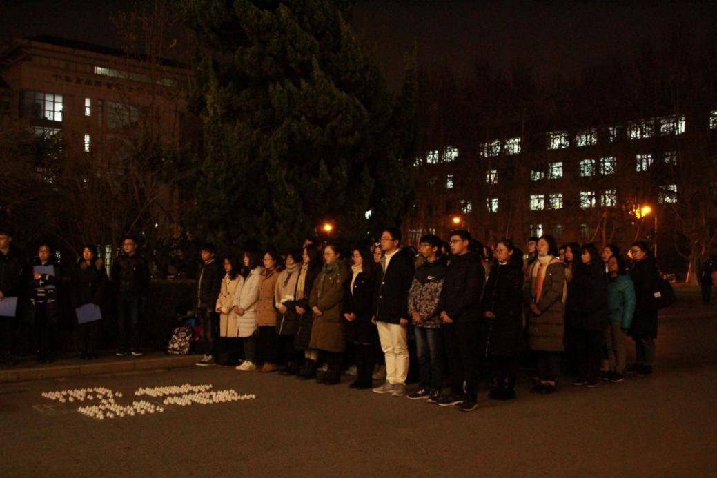 12月12日晚,八叉书库 分党校在学校主楼门前开展烛光祭悼念活动。本科生全体党员及部分积极分子参加了此次活动。
