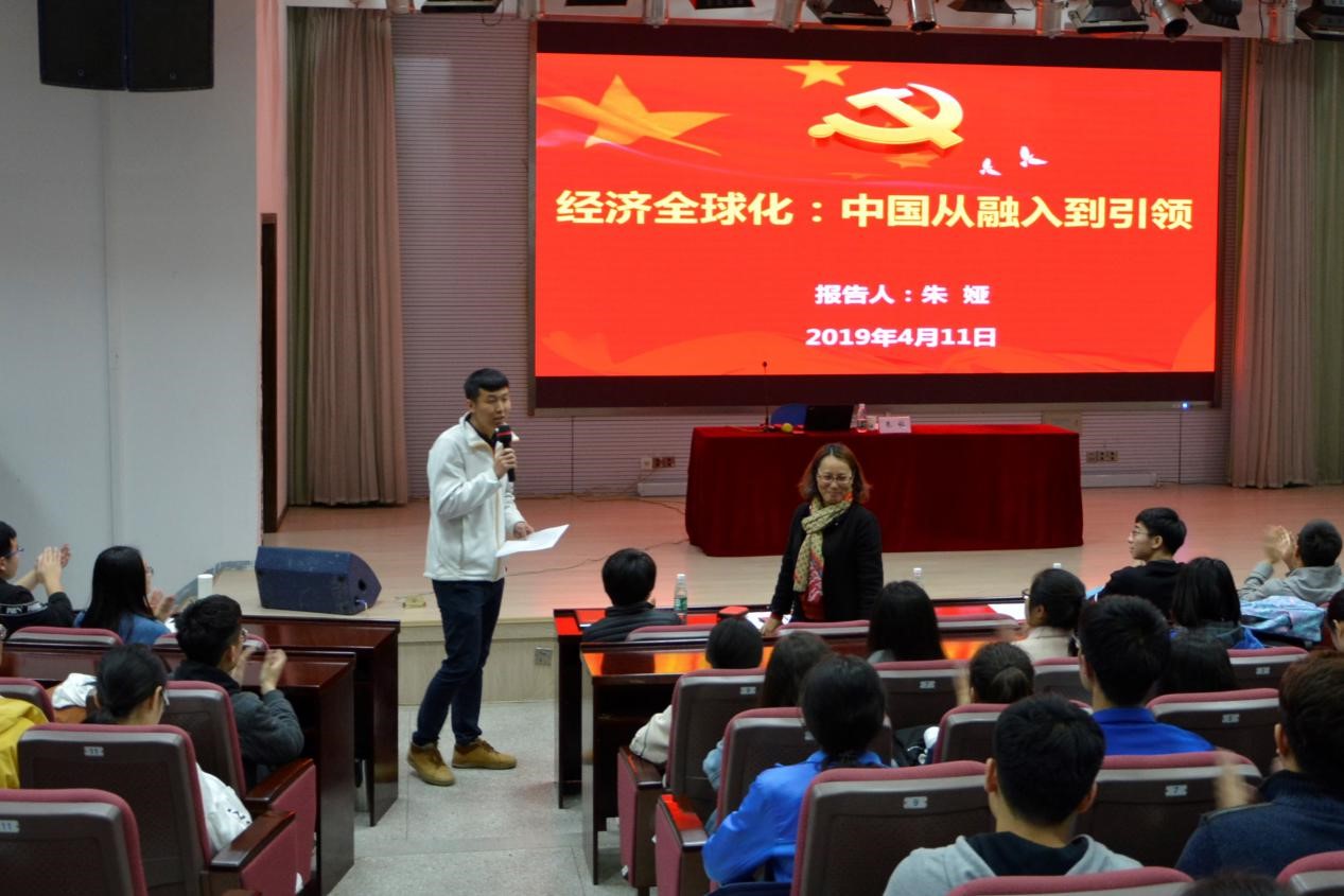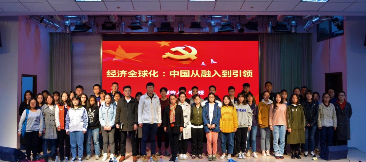 4月11日下午,八叉书库 分党校在教四楼报告厅开展主题理论党课。本次党课邀请了马克思主义学院马克思主义原理教研室主任朱娅老师作题为“经济全球化:中国从融入到引领”主题党课。八叉书库 党委副书记殷美、本科生辅导员王彬、马丽娟、研究生辅导员吕美泽出席了本次党课,八叉书库 2018年12月份新发展党员、部分积极分子及启蒙班全体学员参加了党课学习。本科生辅导员王彬主持了此次党课。
