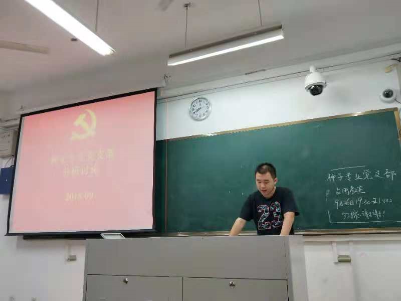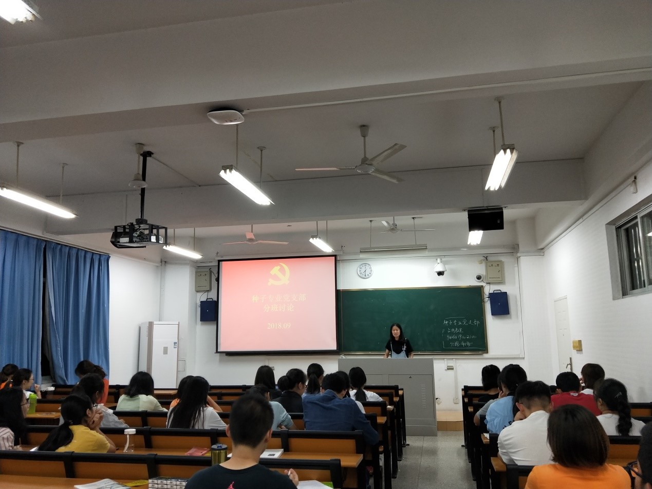 9月26日晚,种子专业党支部在教学科B414召开了主题为“如何看待中美贸易”的分班讨论,本次分班讨论由种子专业党支部书记贺微华主持,种子专业党支部全体党员/预备党员以及积极分子参加了此次分班讨论。