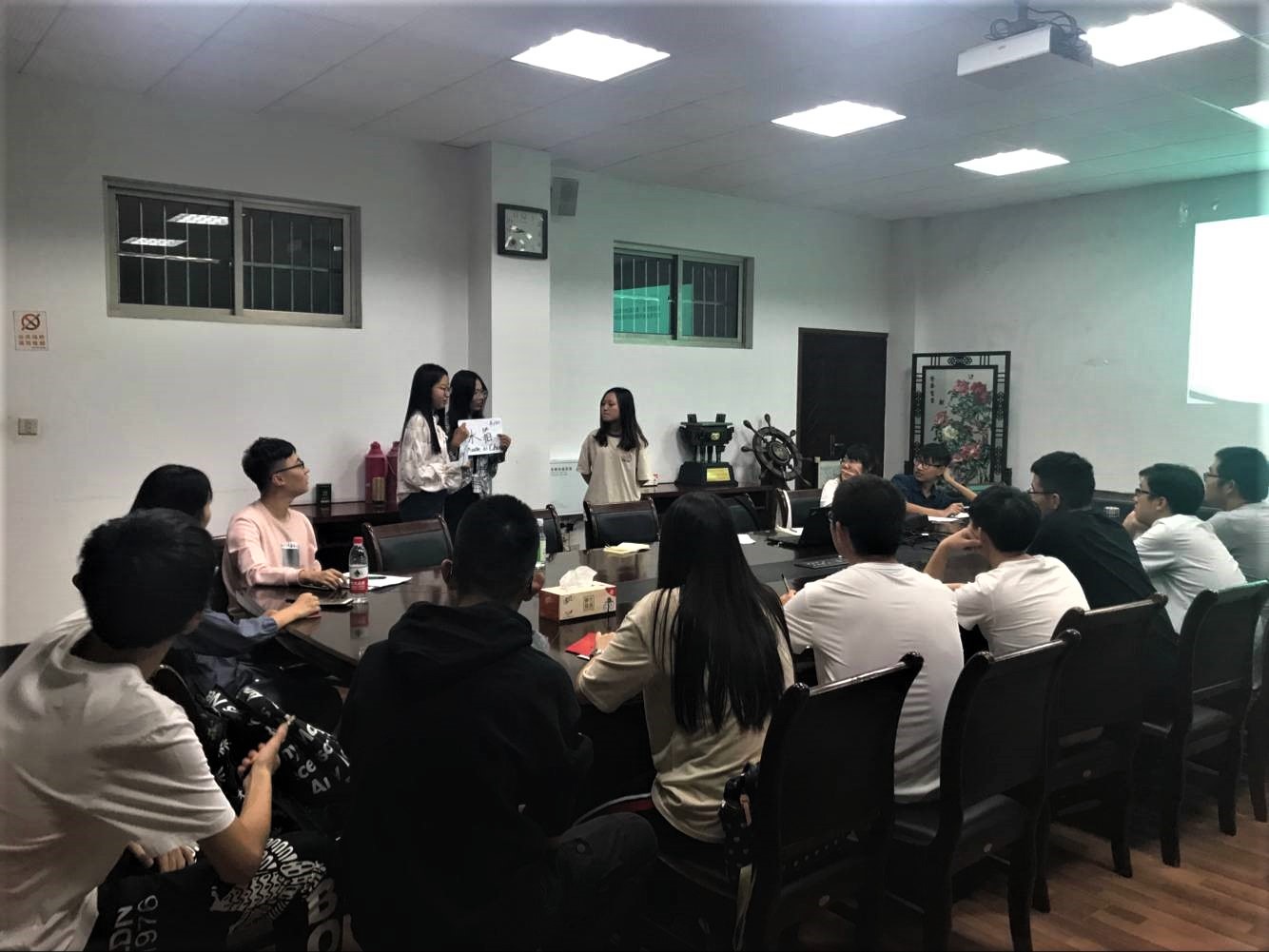 会议一开始,黄蓉同学先介绍了什么是“贸易战”以及中美贸易战的主要过程。之后黄蓉、常梦洁和姜园源同学通过一个短剧表演的形式生动形象地向我们展示了贸易战对我们生活的影响。