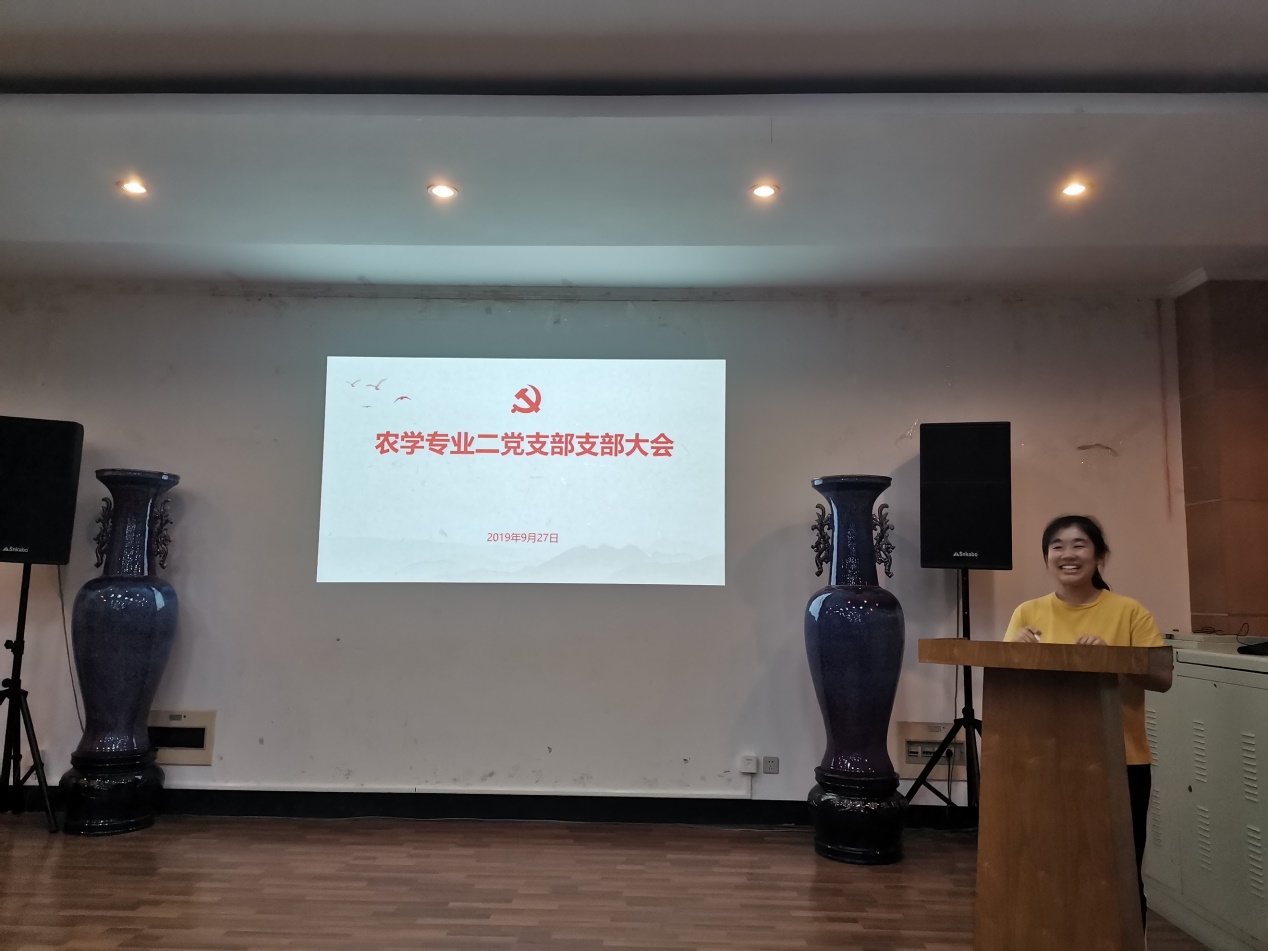 2019年9月27日晚,农学专业二党支部全体成员在生科楼E1001开展了本学期第一次分班讨论会议,主题为“我与祖国母亲的xx年,亲身感受到的时代变迁”,农学专业二党支部书记应皓同志主持了此次分班讨论会。