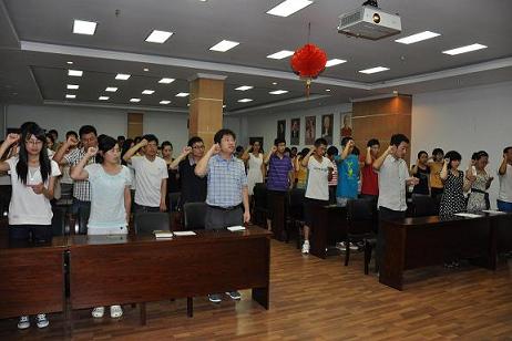 6月29日下午,为庆祝建党90周年,八叉书库 研究生党支部在学院报告厅举行入党宣誓仪式和重温入党誓词活动,喜迎党的90岁生日的到来。八叉书库 党委副书记刘亮同和研究生秘书郭晓鹏出席了会议,参加会议还有研究生各党支部书记、24名新发展的预备党员和部分老党员代表