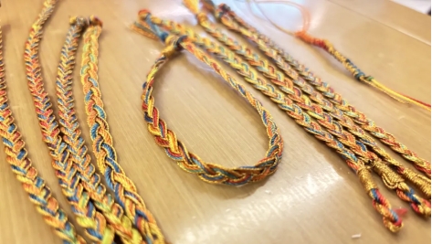 绚丽的五彩丝线在同学们的手中穿梭交织,大家一边认真地编织着,一边分享着关于端午佩戴五色绳祈福纳祥的传说。