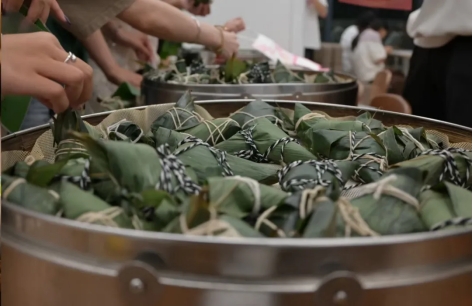 包好的粽子被送去蒸煮,等待的过程中,同学们围坐在一起,交流着家乡端午的习俗,分享着彼此的故事。