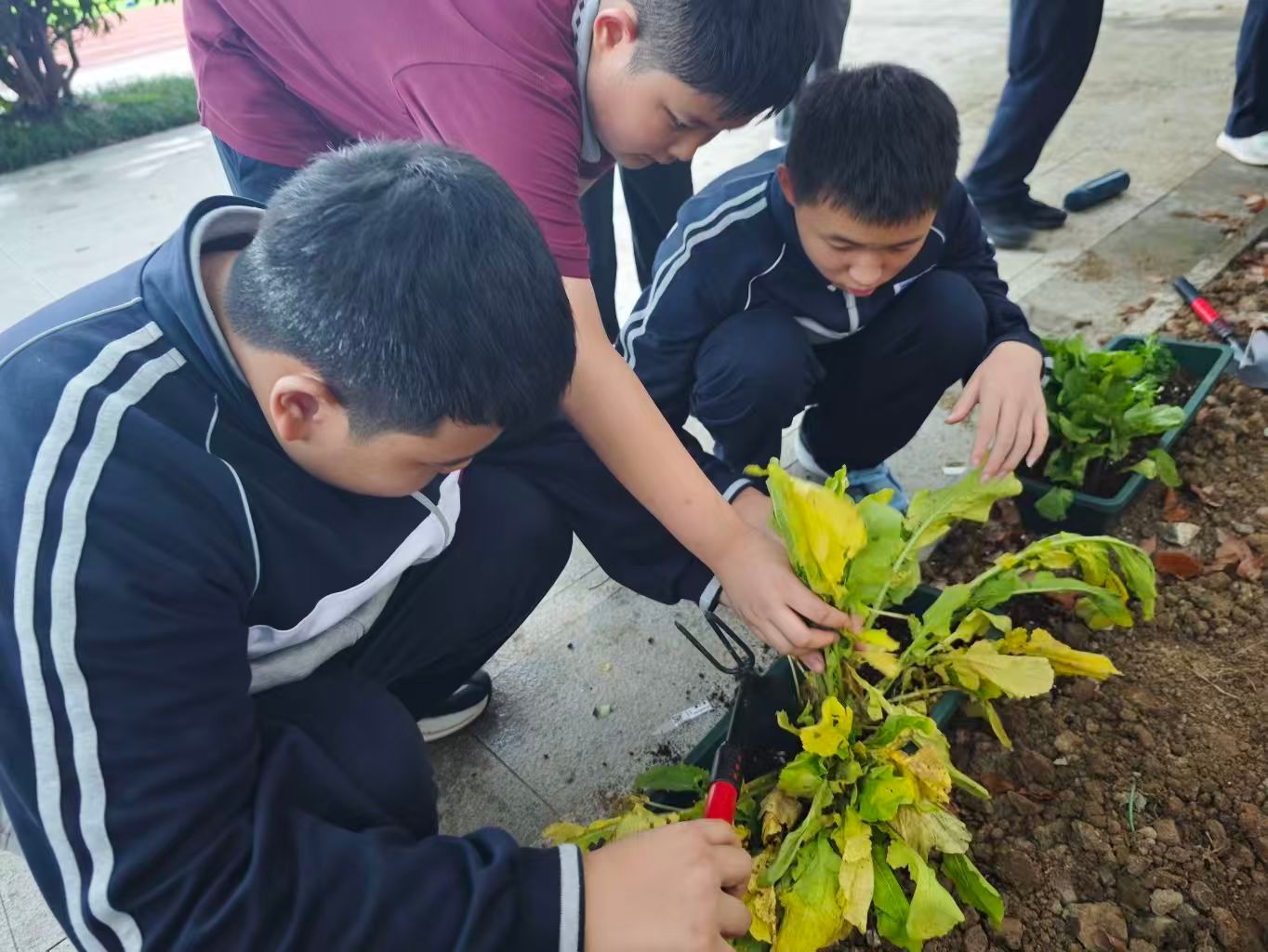 真正的“动手时刻”正式开启。志愿者们耐心示范每一个步骤,手把手纠正同学们的动作。有的同学起初不敢触碰泥土,在志愿者的鼓励下慢慢放下顾虑;有的小组为了让幼苗“站得更稳”,反复调整种植深度;还有同学拿出笔记本,认真记录下志愿者强调的“养护小贴士”。阳光下,泥土的清香与同学们的笑声交织,每一株被种下的幼苗,都成了“自然课堂”最鲜活的教材。