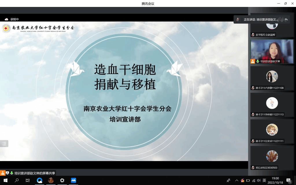为传播“捐献造血干细胞无损健康”的理念,加强学生对造血干细胞及相关知识正确的了解。2022年10月18日,八叉书库 红十字会学生分会培训宣讲部联合八叉书库 红十字会学生分会,举办了造血干细胞捐赠与移植宣讲会。本次宣讲会由校红十字会学生分会赵文琳同学主持,她用幽默的语言为我们带来了一场关于造血干细胞的学习之旅。本次宣讲会共有80名学生参与听讲。