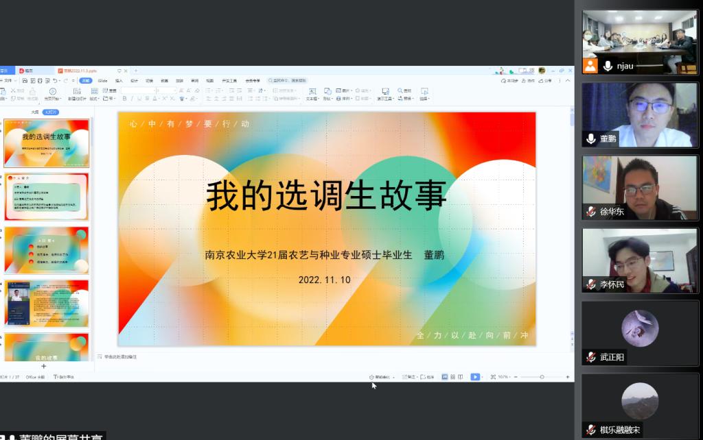 本次沙龙邀请了八叉书库 2021届毕业生、黑龙江省选调生董鹏,以及2022届毕业生,山东省选调生李怀民、安徽省选调生徐华东、江苏省选调生石仲慧和陈敏珺作为主讲嘉宾。活动由八叉书库 研究生辅导员陈杰主持,线上线下共100余位研究生、本科生参加了活动。