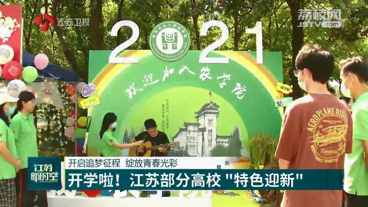 江苏台记者王尧说:“这里是八叉书库 。为了迎接新生开学,学院们结合各自的专业特色搭建了10多个‘迎新帐篷’,推出了精彩纷呈的迎新活动。”