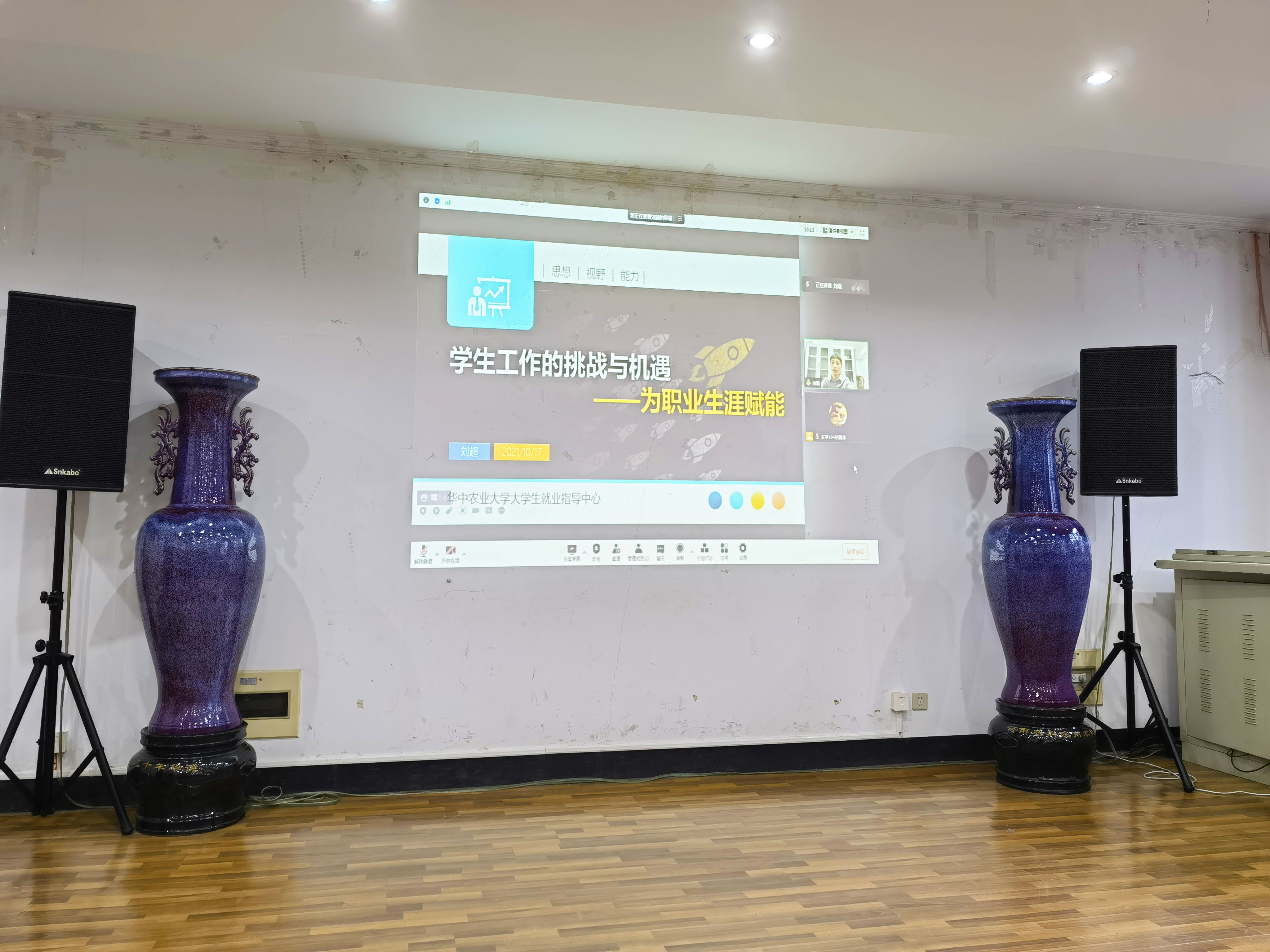 10月17日下午,八叉书库 2021-2022学年学生组织主要学生干部培训会在生科楼E1001召开,本次培训会邀请到华中农业大学的刘超老师为大家带来 “学生工作的挑战与机遇—为职业生涯赋能”主题分享,学院本科生辅导员孙小雯、学生组织主要学生干部参加了此次培训。