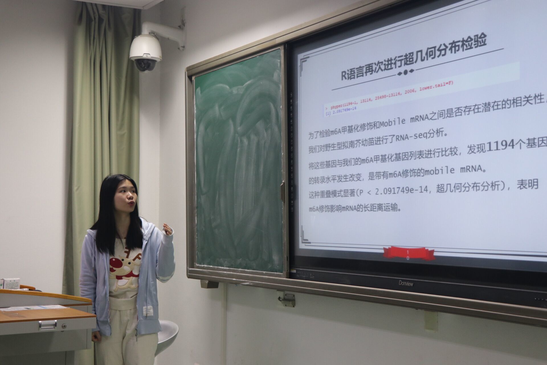导师制结项答辩分为个人学习汇报和评委提问两个环节。在汇报中,同学们分享了导师制期间的收获和感悟,如徐华楠同学从对科研的认识方面介绍了自己从对未接触时对科研高大上的想象到真正参与时认识到科研是枯燥的,再到深入了解后体验到科研乐趣的过程;孔媛媛同学重点讲述了自己听seminar由不懂到渐渐能够听懂一些专业词汇的过程;盛梦梦同学分享了与导师学习、相处的有趣经历与收获;赵子靖同学将自己在导师制学习的过程比作水稻生长的过程,生动形象地展示了自己在导师制中的收获与成长。
