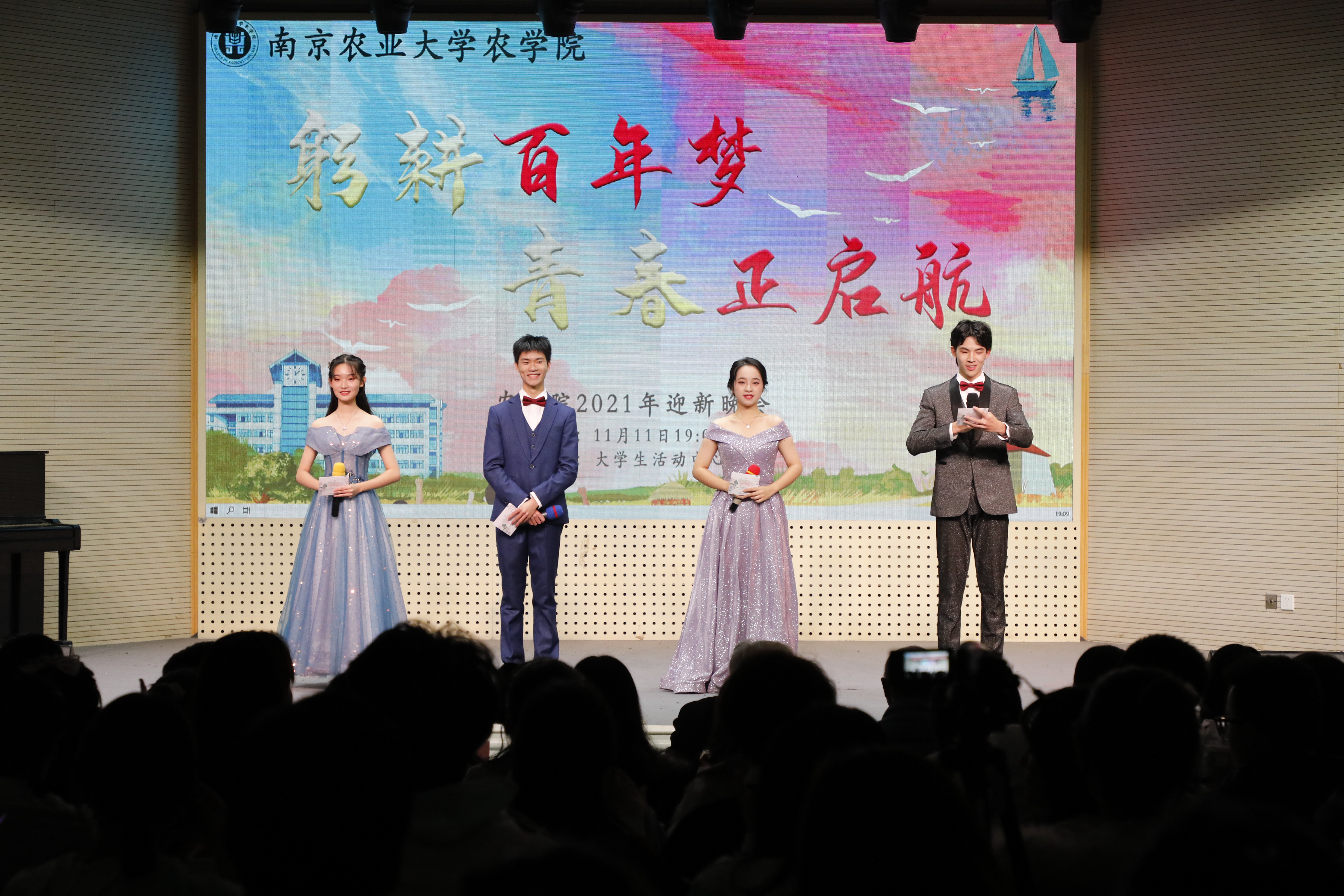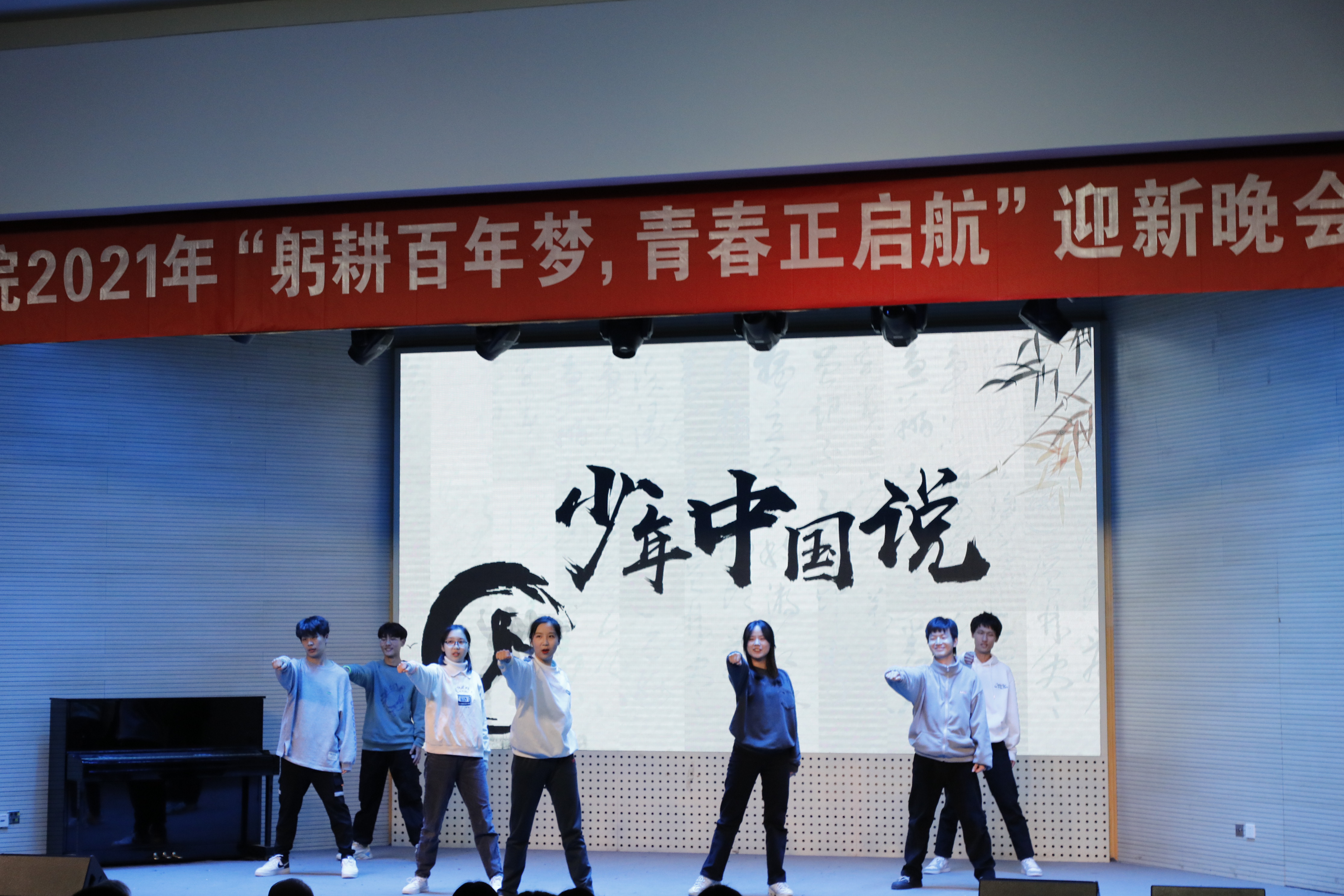 本次晚会是新生们第一次集体亮相,即是欢迎大家到来的盛会,更是启程的号角,2021级新生,八叉书库 欢迎你们的到来,躬耕百年梦,青春正启航!