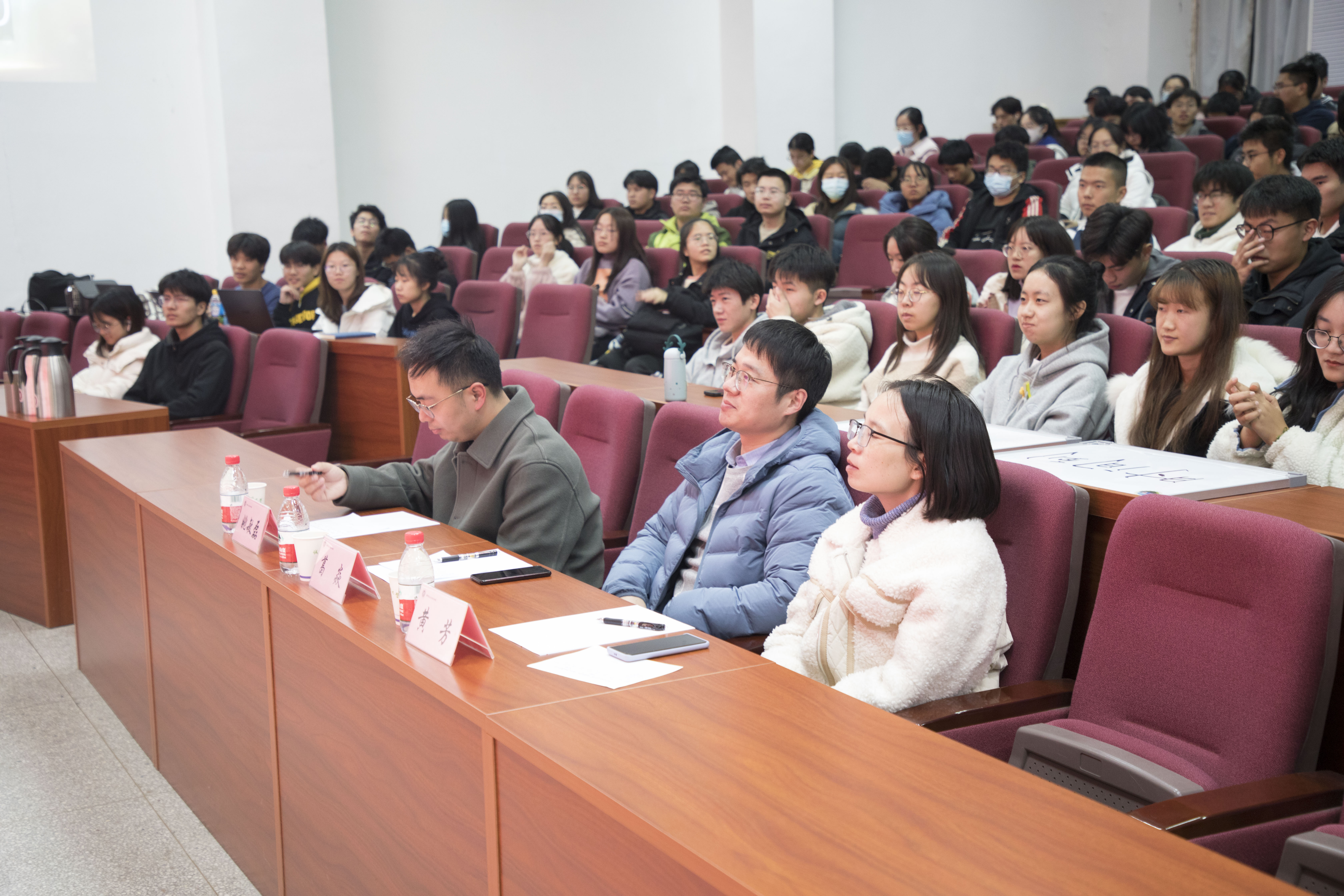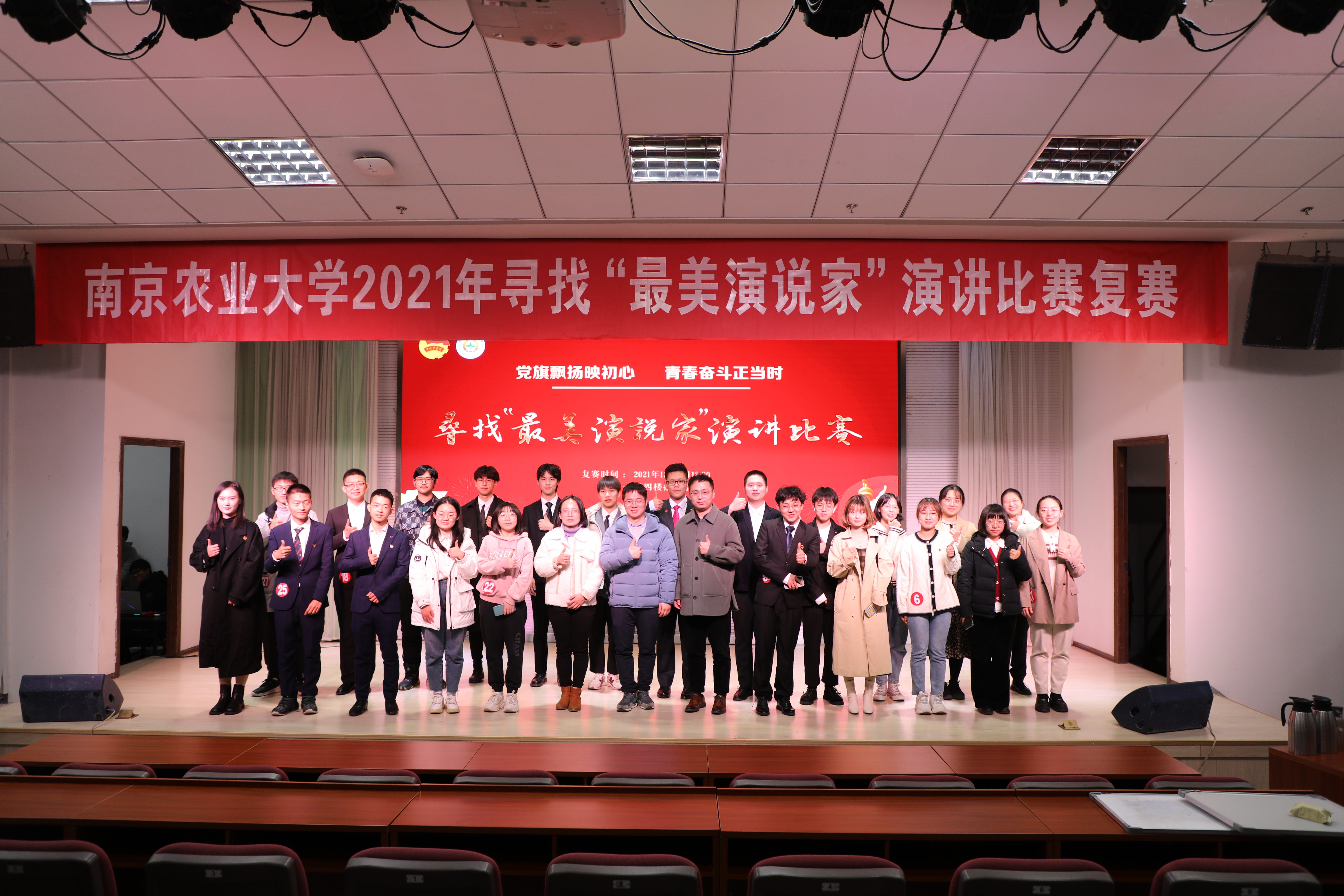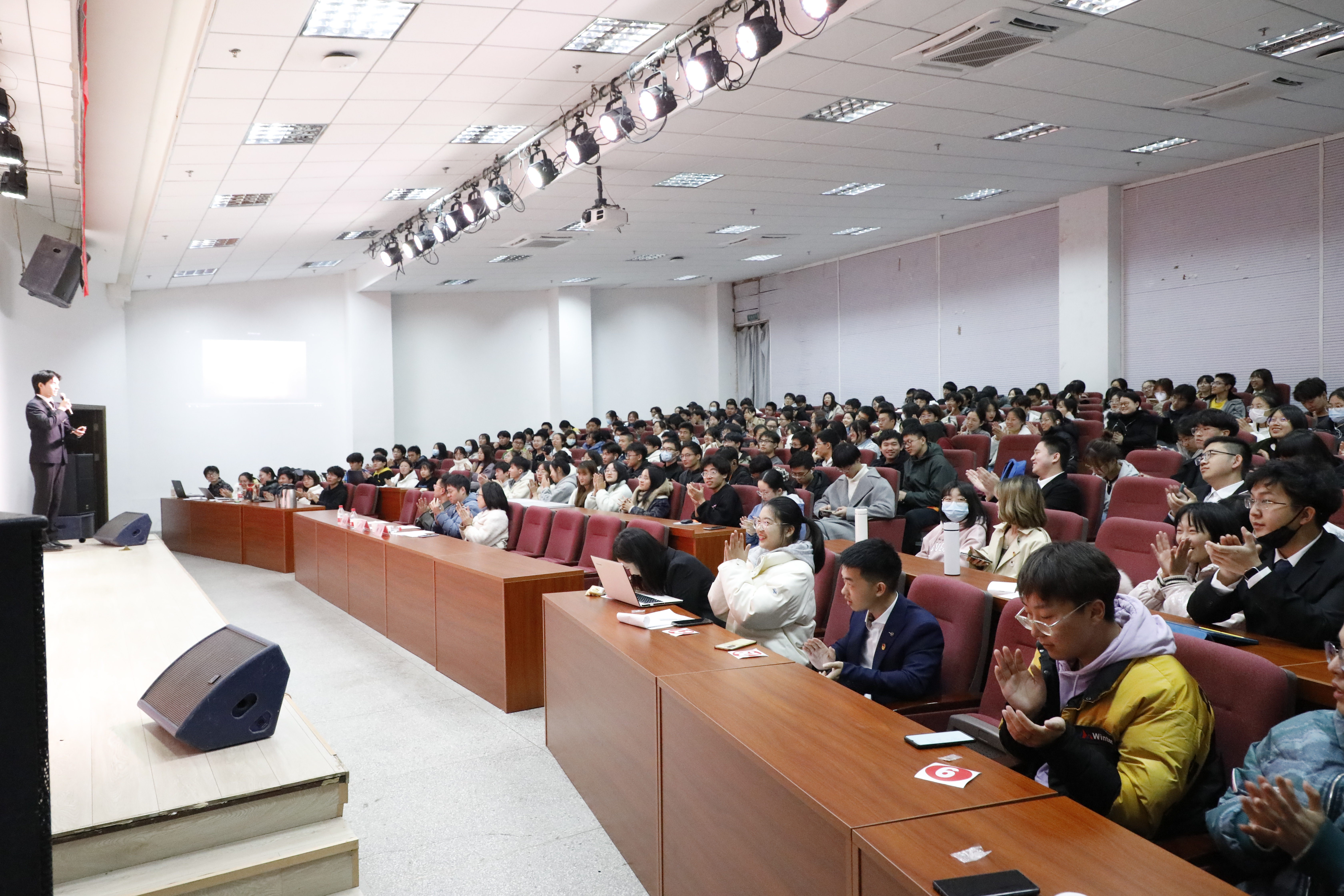 “党旗飘扬映初心,青春奋斗正当时”,12月3日晚,由校团委主办八叉书库 承办的首届八叉书库 2021年寻找“最美演说家”演讲比赛复赛在教四楼报告厅顺利举行,来自各个学院的30位选手通过初赛选拔进入复赛,八叉书库 党委宣传部思政教育办公室主任葛焱、学工处教育管理科科长黄芳、团委宣传教育部部长姚敏磊受邀担任评委,200余名同学到场观赛。