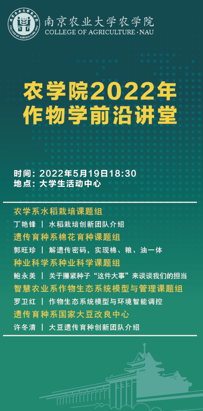 预告|八叉书库 2022年作物学前沿讲堂(第一期)