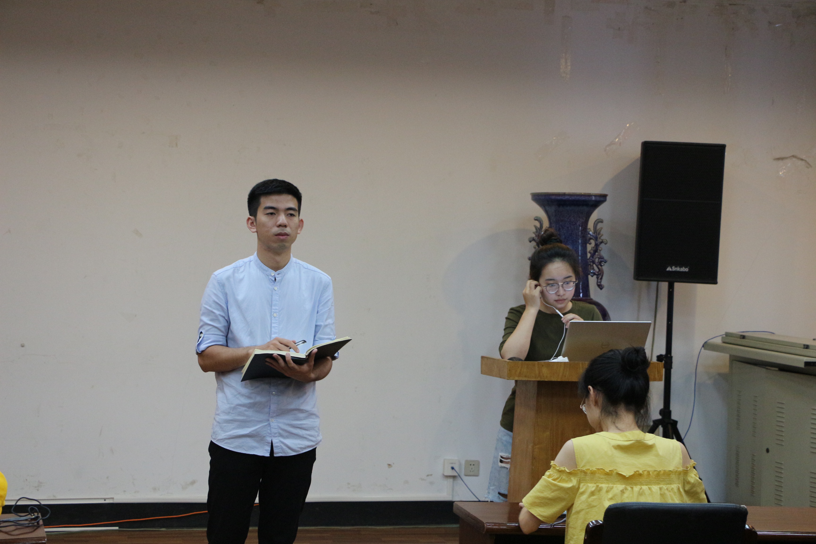 确认所有人员到齐之后,叶彤首先讲解了此次迎新活动的主要流程。内容主要分为新生到校前和到校后两部分。新生到校前,志愿者要通过短信或其他多种方式联系新生,并解答其存在的问题,然后进行到校时间、行李数量、随行人员等信息的确认。新生到校以后,志愿者要提前签到并领取志愿者证,待新生到校之后帮助新生完成报到手续、引导新生拍摄入学第一照、帮助新生搬运行李并带至宿舍确认安顿完毕,最后回学院帐篷签退,并归还志愿者证。