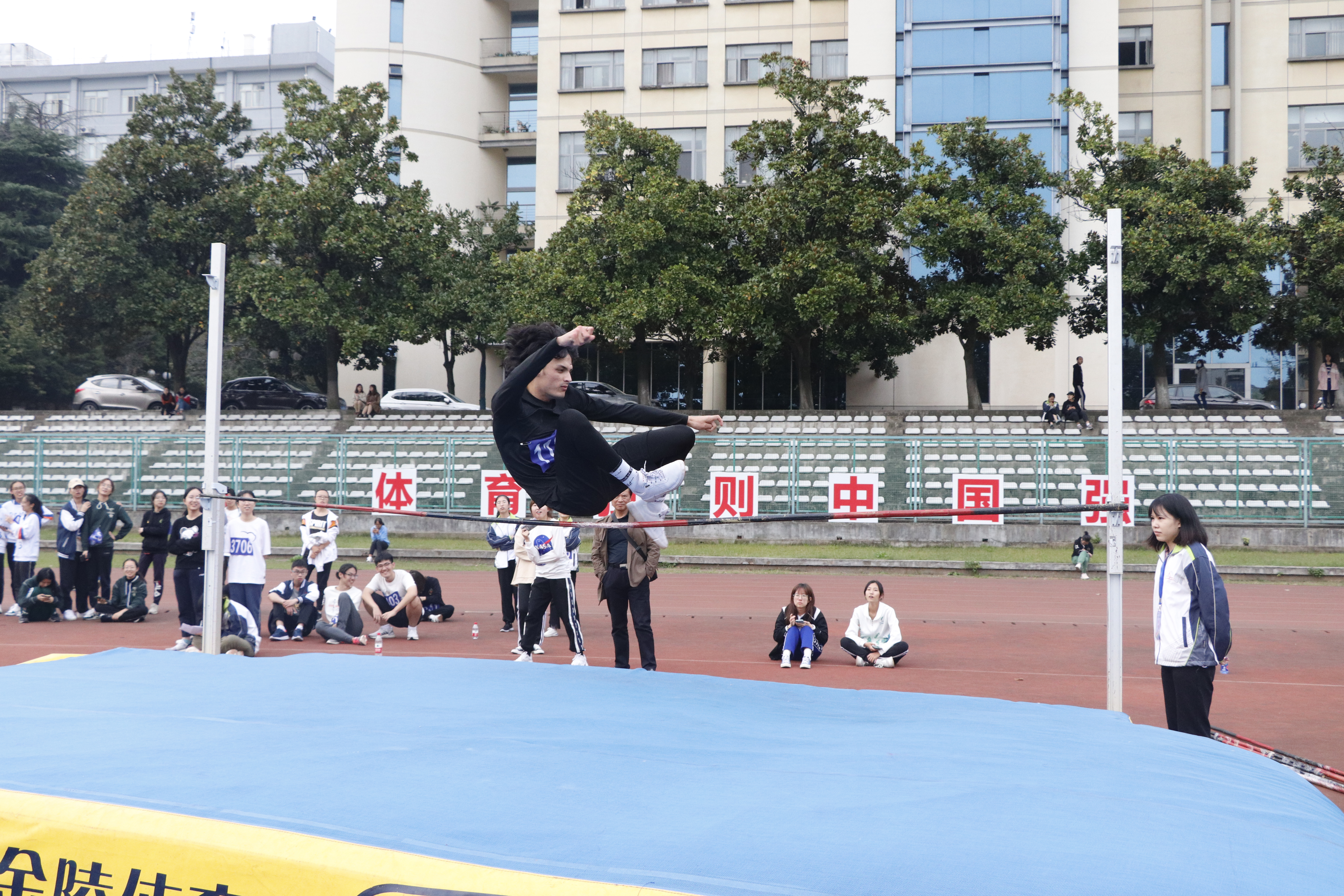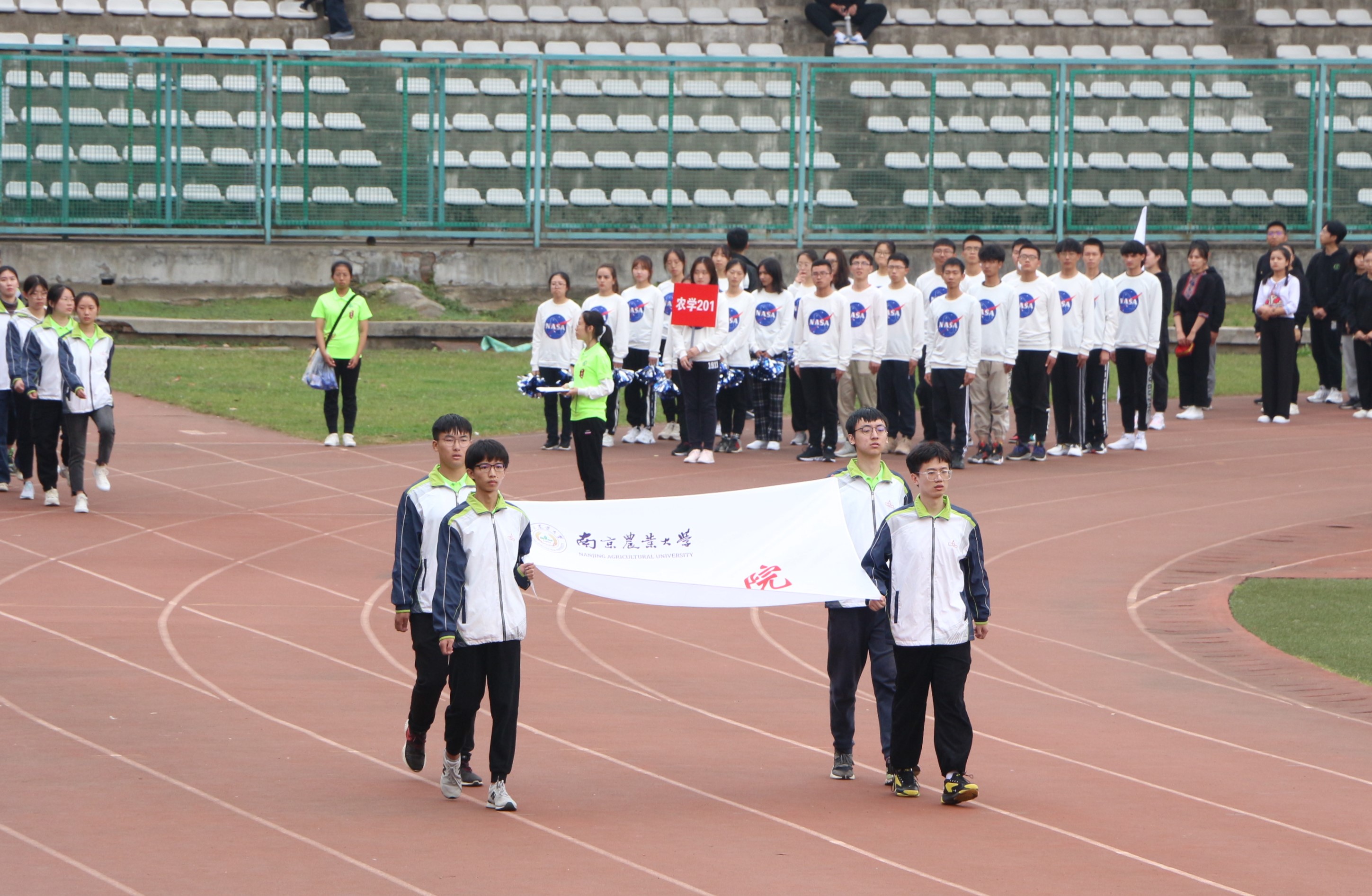 下午一点半,运动会准时开始。开幕式上,八叉书库 同学精神抖擞,迈着整齐的步伐走过主席台。各个班的班服、口号还有精心准备的舞蹈,都成为开幕式里一道道靓丽的风景线,为这场运动会开了一个出色的头。开幕式后,同学们立刻开始投入比赛,赛场战风云:跑道上,有冲过终点的胜利呐喊;跳高处,有一次次突破自己、尝试更高的轻巧身影;观众台上,有助威呐喊、鼓掌加油的热情观众……运动员们在场上赛出了风格,赛出了水平,赛出了南农学子该有的品质。