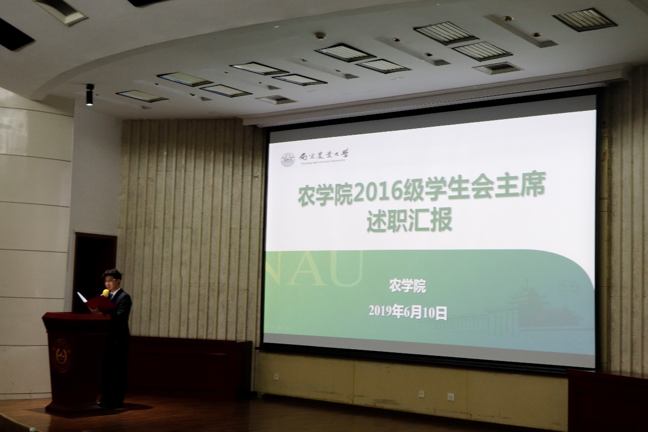 之后,团委、学生会代表郭迎新就一年以来工作进行了述职汇报,汇报中有总结、有反思、有感谢,并对新一届成员给予新的期待。