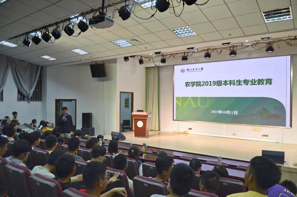 10月11日晚,八叉书库 2019级本科生专业教育讲座在教四楼报告厅举行。八叉书库 副院长李刚华教授、曹爱忠教授,种业科学系主任刘康教授、农业系刘小军教授应邀参加并为2019级本科生作专业教育介绍。八叉书库 党委副书记殷美、本科生辅导员王彬、孙小雯,学院2019级全体本科生参加本次讲座,讲座由王彬主持。