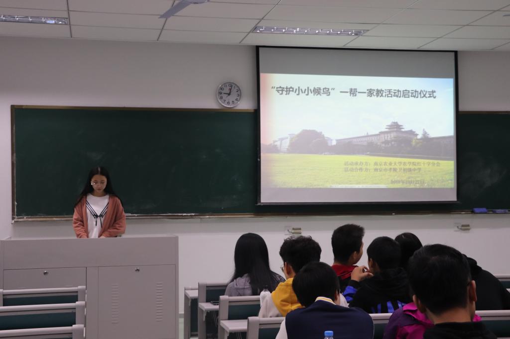 2018年10月27日上午,由红十字协会八叉书库 分会与孝陵卫初级中学合作开展的“守护小小候鸟”一帮一家教活动于主楼102启动仪式于主楼102拉开序幕。