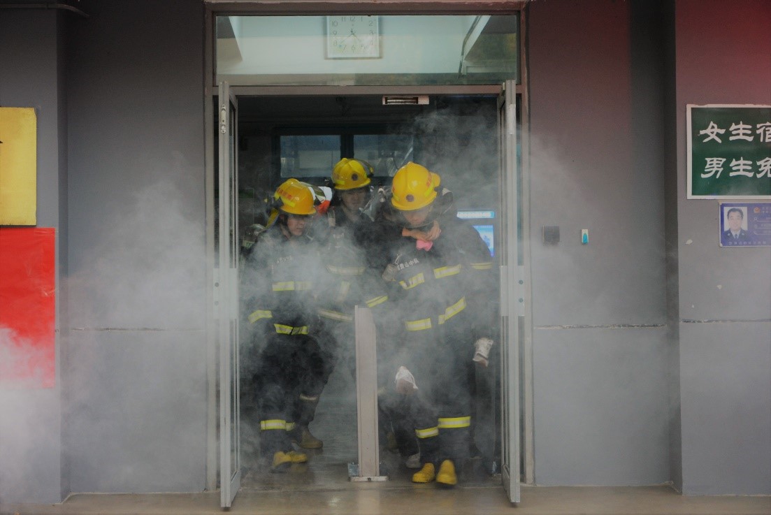 接着消防演习拉开了序幕,本次消防演习的地点定于八叉书库 本科生宿舍楼10舍3楼,在模拟火灾发生后,消防车接到通知拉响警报系统,进入待命状态,同学们有序撤离,消防员进入宿舍灭火并营救伤员。整个消防演习活动展开顺利、井然有序,达到预期效果并实现了其教育意义。