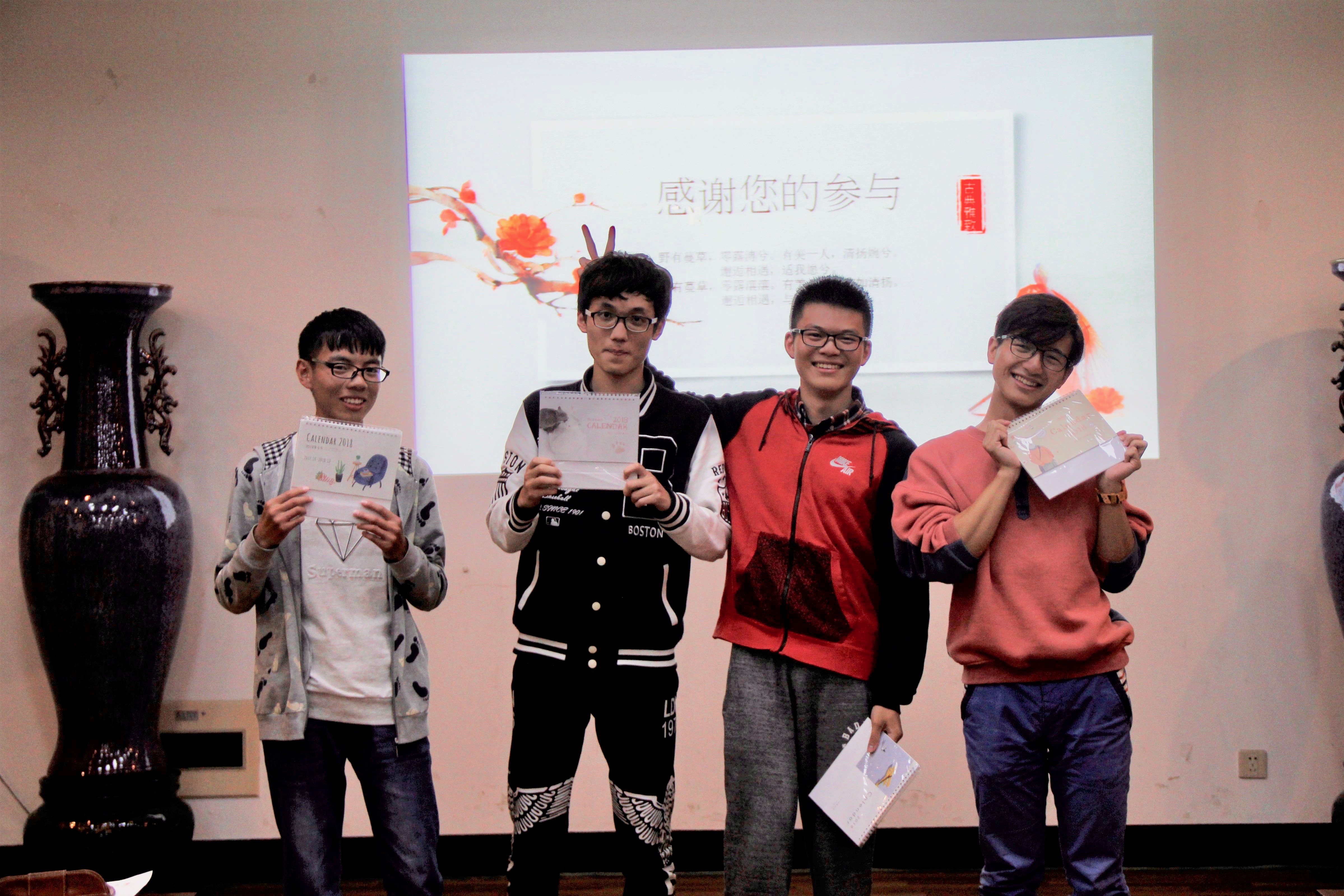 主持人开场通过抽签的方式让同学们依照签上的人物作一首诗活跃气氛,然后进行分组答题。游戏过程中还设置了加时卡、抢答卡、提示卡等趣味环节,在古诗词对接环节中大一的学弟学妹们更是充分发挥了他们的优势。在读书分享过程中,向大家简单介绍推荐了《皮囊》等书籍,台下的同学也对自己有兴趣的书或人物进行了心得探讨等。并在活动接近尾声时提出就选择阅读纸质书籍还是电子书以及现在碎片化阅读“泛滥”的现状做了讨论。