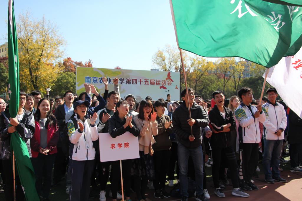 本次田径运动会上,八叉书库 观众以呐喊、击鼓等方式为农 学院运动健儿们加油打气,助力农学健儿奋勇拼搏,体现了当代农学人顶天立地、团结奋进的卓越风采与精神面貌。