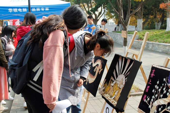 初赛结束过后,为增加活动的趣味性,比赛设置了麦秆画制作环节,选手们通过自身想像和创造力创作出形式各样,内涵深远的麦秆画作,并于15日在玉兰路进行展示。