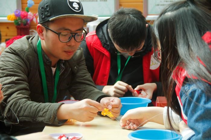 下午1点,二十七名志愿者在学校南门集合,步行前往月牙湖残疾人手工坊。到达手工坊后,残疾人阿姨细心教导志愿者们编织手工艺品,并向志愿者们讲述了月牙湖街道“残疾人之家”的故事。