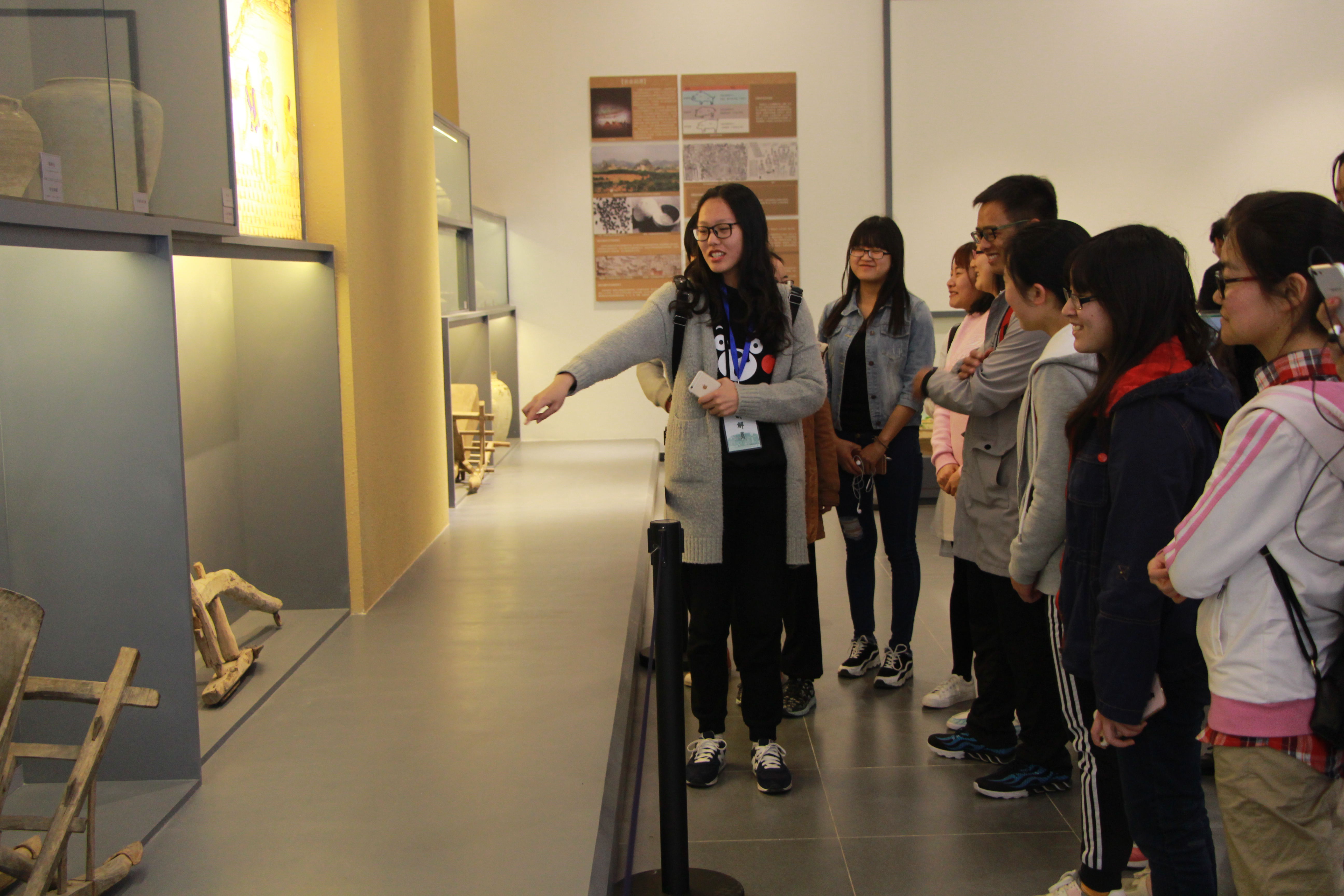 在讲解员的带领下,各班学生先后参观了"中华农业文明"等六个展厅。走进农博馆,一个石斧、一把铜锄就把参观者带入刀耕火种的原始农业时代。随着讲解的进行,同学们对翻车等传统农业水利工具进行参观。水利是农业命脉,我国古代一向重视水利工程.从都江堰到郑国渠,再到西北地区新疆的坎井,无一不体现水利的重要性。之后,同学们分别对农业制度与历史演变、中国传统农业科技对世界的影响、丰富多彩的乡村生活与农业文明以及中国的茶文化等进行学习。